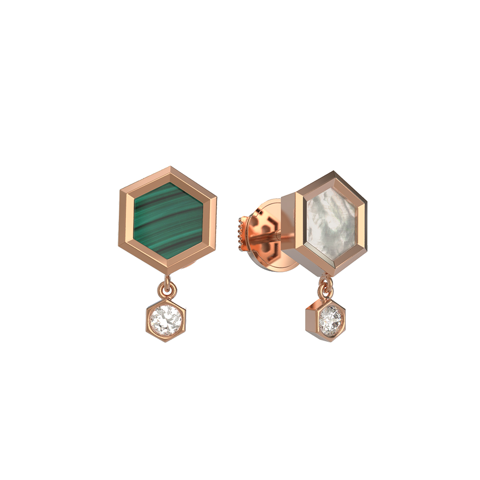 Серьги из золота c бриллиантами, малахитом и перламутром