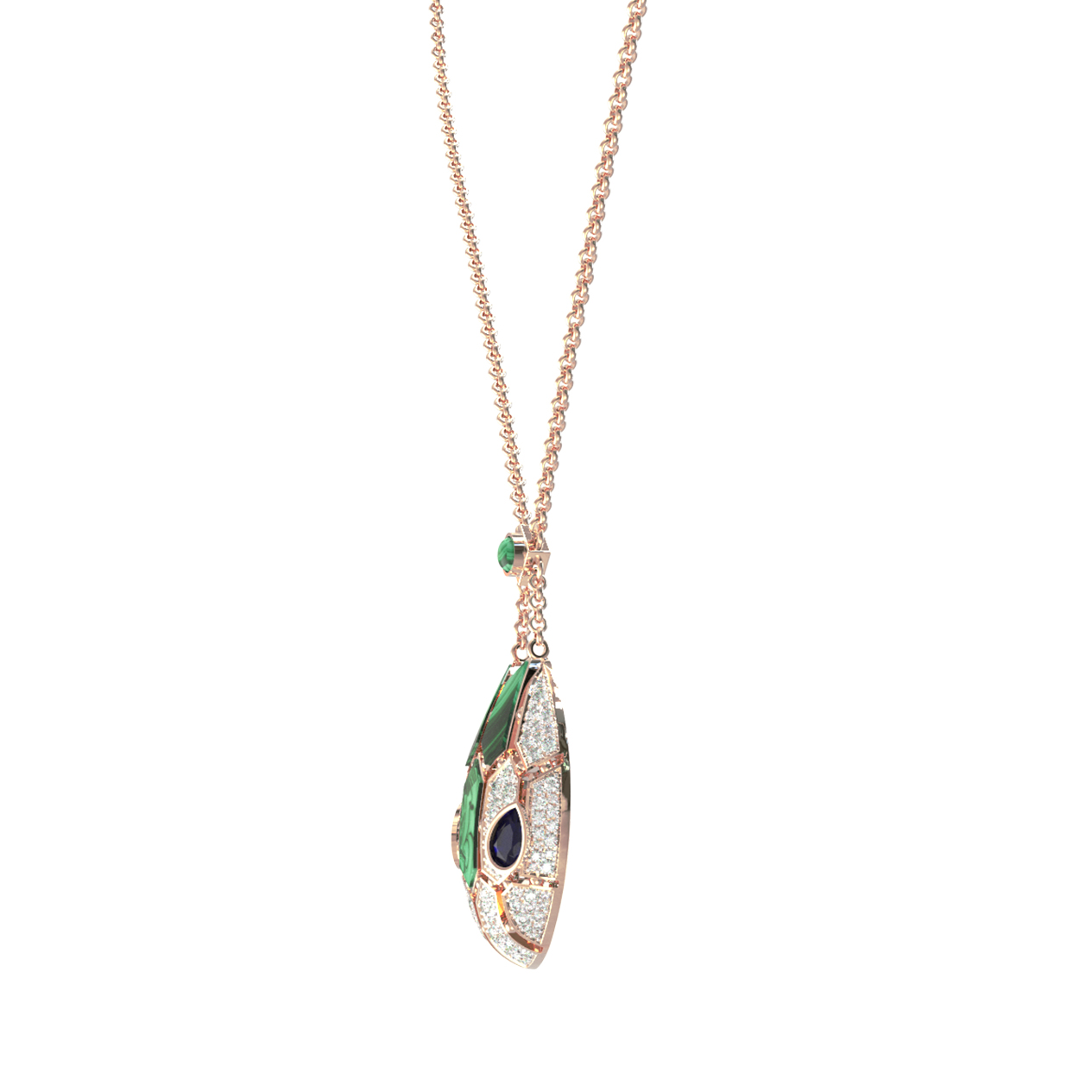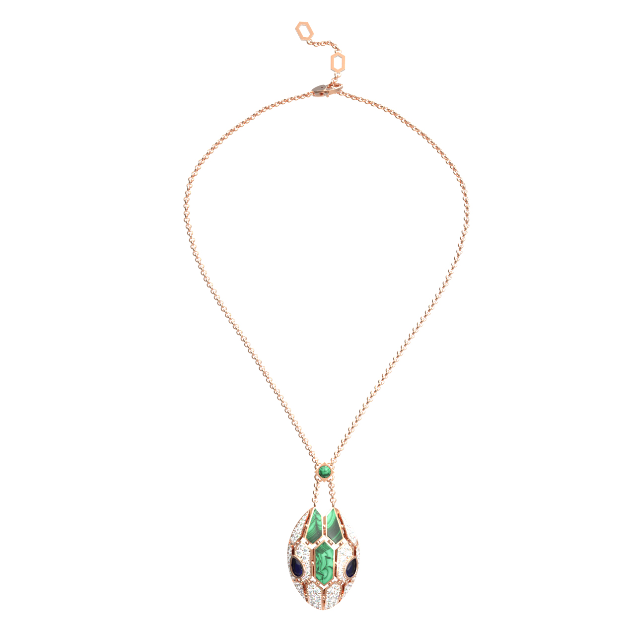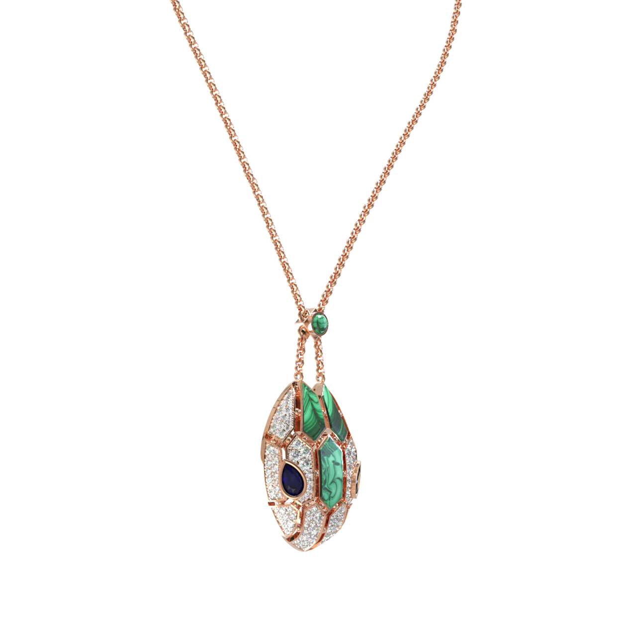 Колье из золота c бриллиантами, сапфиром и малахитом