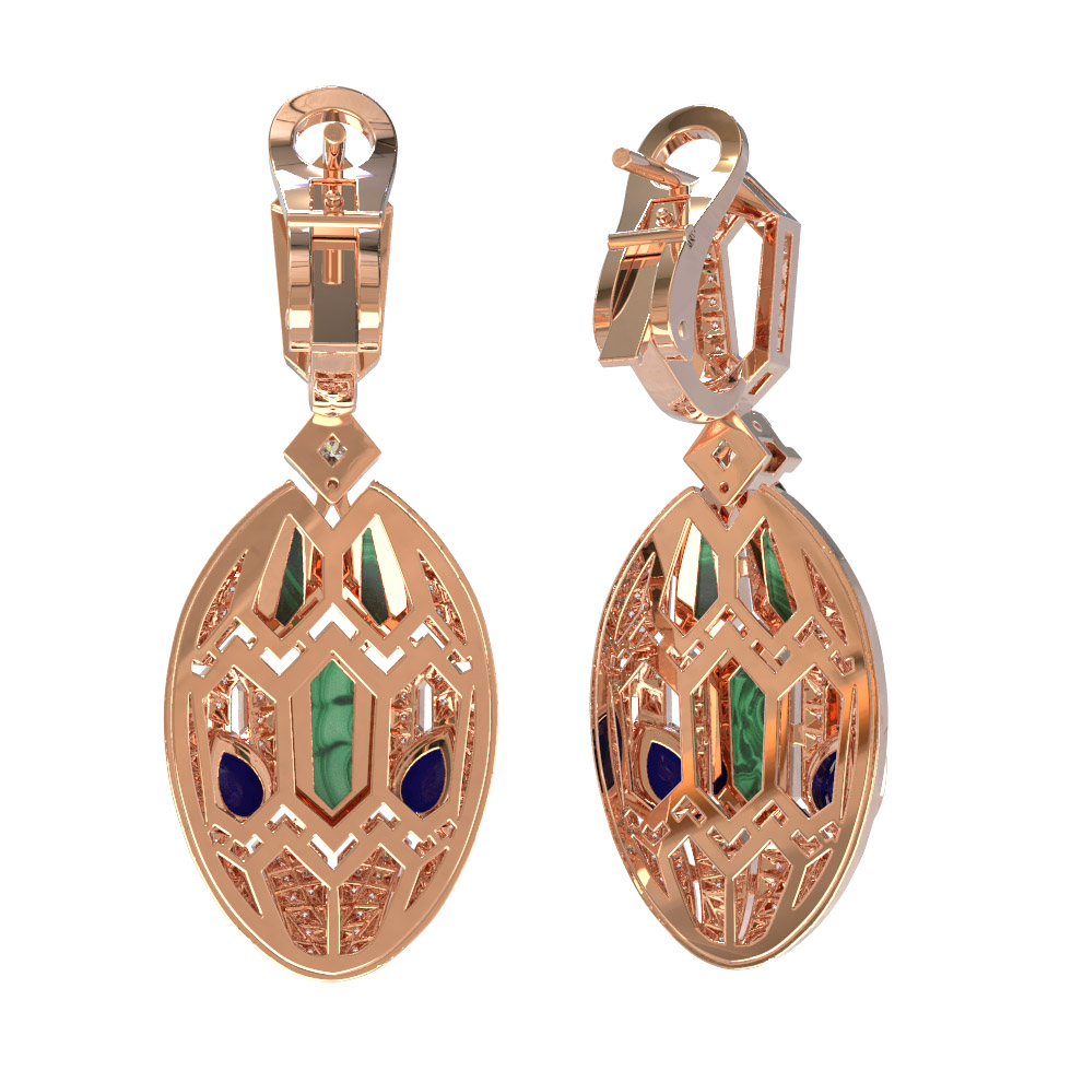 Серьги из золота c бриллиантами, сапфиром и малахитом