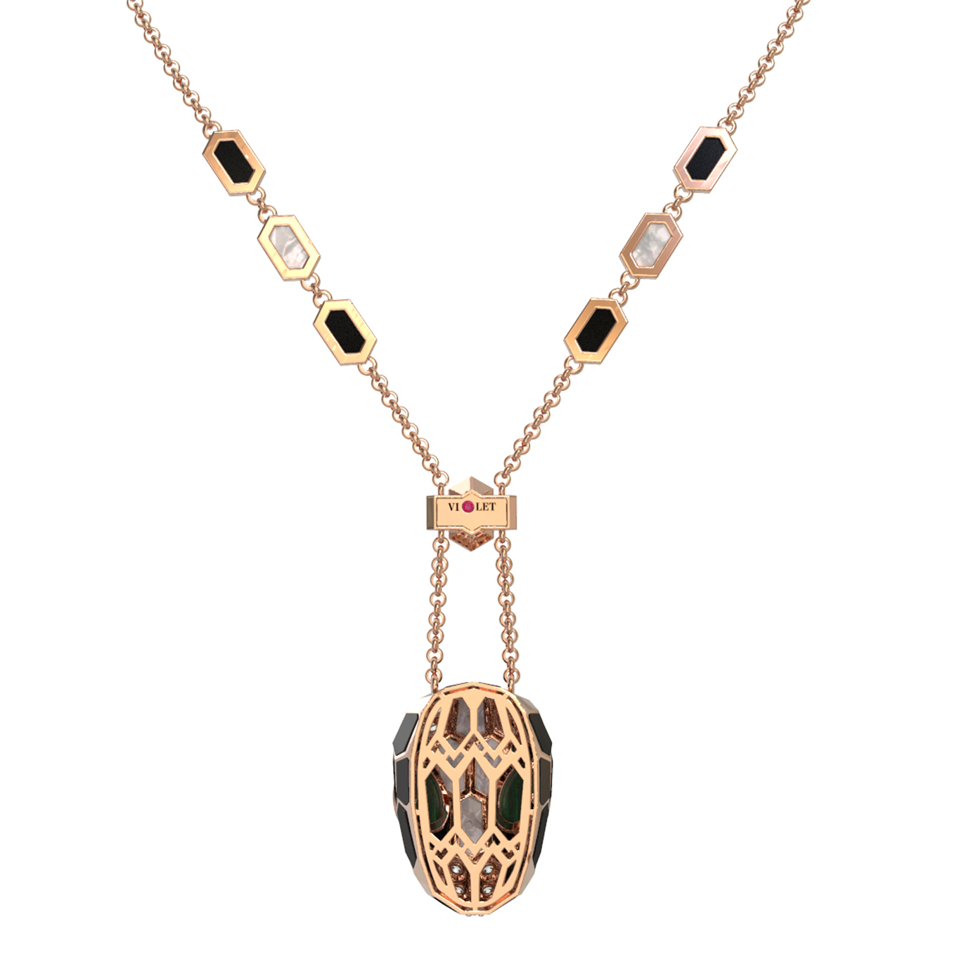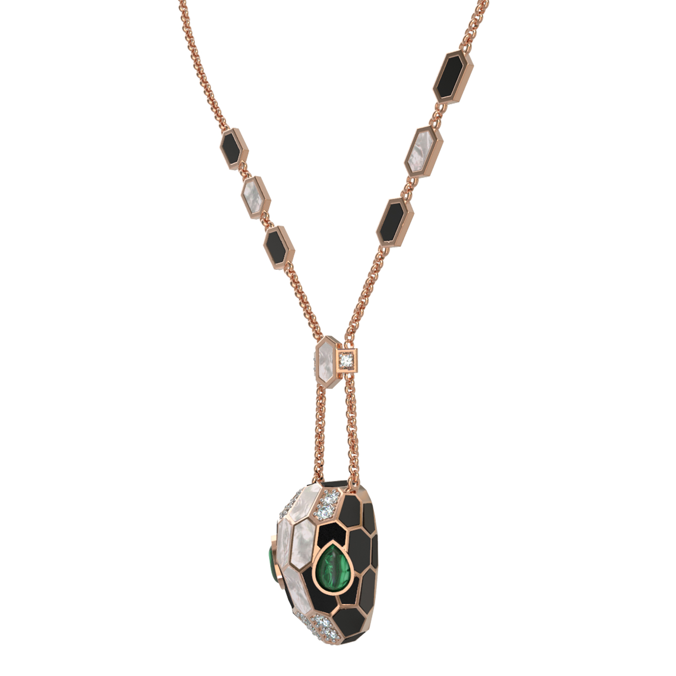 Колье из золота c бриллиантами, рубином, ониксом, малахитом и перламутром