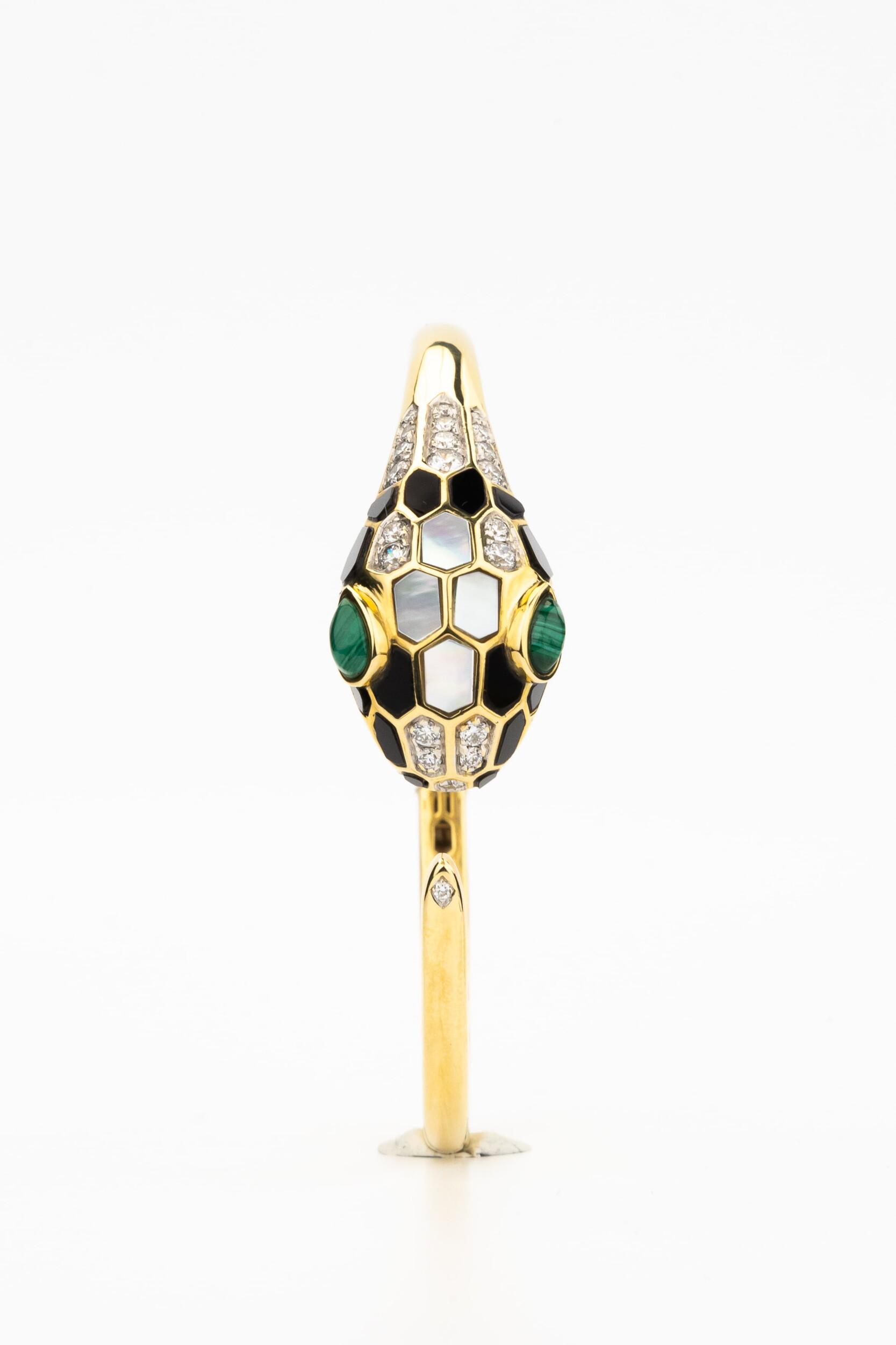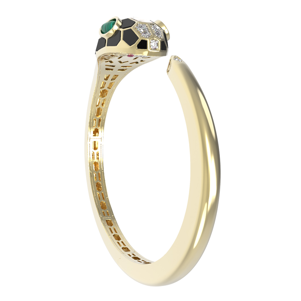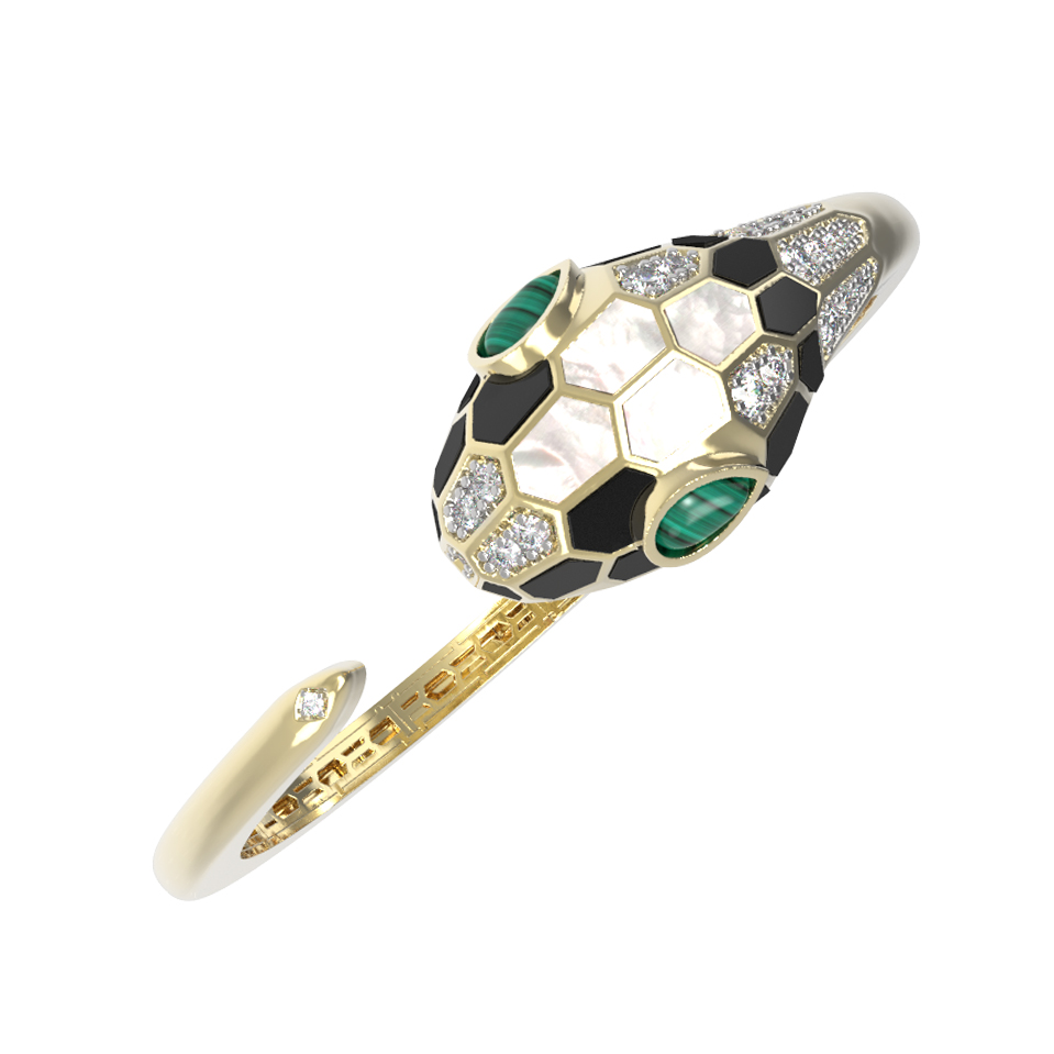 Браслет из лимонного золота c бриллиантами, рубином, ониксом, малахитом и перламутром