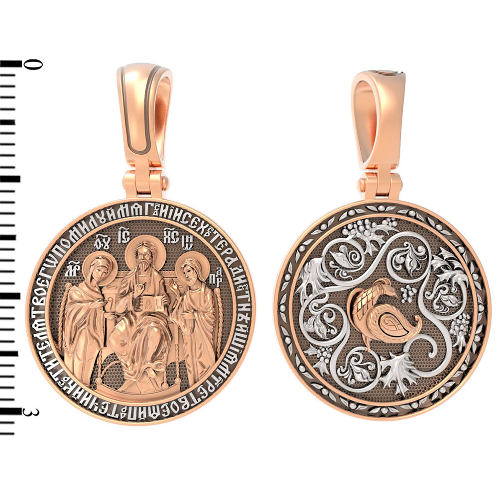 На лицевой стороне образка изображена икона Иисуса Христа Деисус. Он представлен в образе Господа Вседержителя, восседающего на престоле. В его руках — Книга Судеб всего человечества. С двух сторон ему предстоят Пресвятая Богородица и пророк Иоанн Предтеча, Креститель Господень. Первыми помощниками и заступниками человека в его земной жизни являются Матерь Божия и Иоанн Креститель. Поэтому каждый верующий в первую очередь к ним обращает свои молитвы с просьбой о духовной помощи. Такая молитва-прошение помещена на образке: «Господи Иисусе Христе, ради честнейшия Матери Твоея и Предтечи и Крестителя Твоего, помилуй мя».
