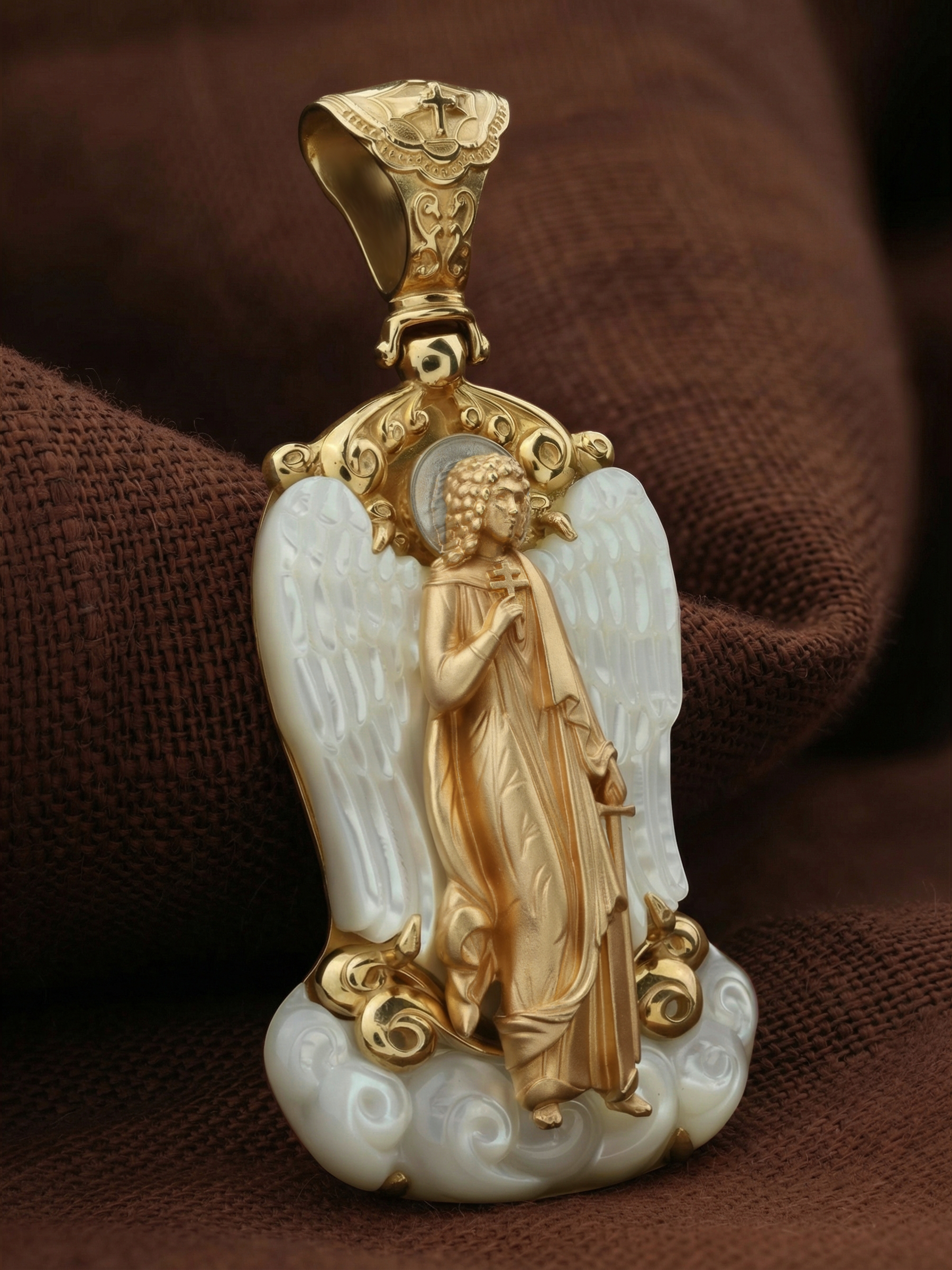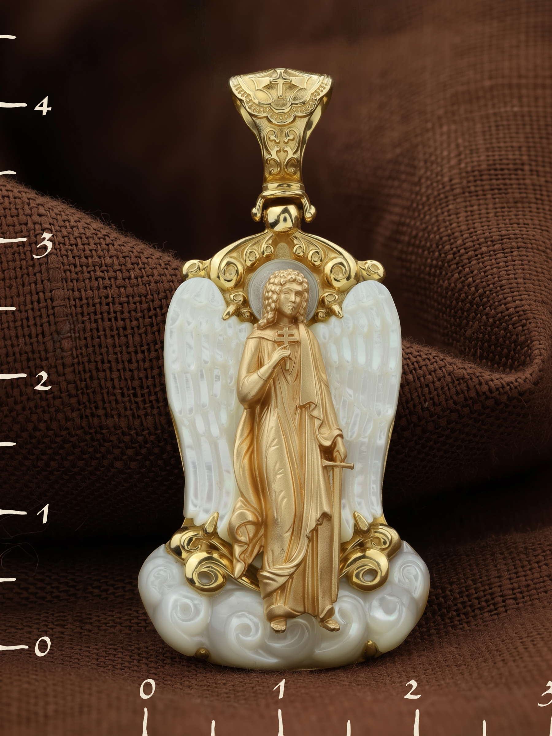 На лицевой стороне образка изображен Святой Ангел-Хранитель держащий в правой руке крест, а в левой — мечь. Ангел-Хранитель — это Ангел приставляемый Богом к человеку при крещении для охраны и помощи в добрых делах. Всё, что есть в нас доброго, чистого, светлого: всякая хорошая мысль, всякое доброе движение сердца, наша молитва, покаяние, добрые дела — всё это в нас рождается и совершается по внушению незримого нашего Ангела-Хранителя. Действуя через нашу совесть и наше сердце, это он, наш Ангел, удерживает нас от греха и соблазна, это он помогает нам бороться с искушениями, это он внушает нам страх пред тяжким грехопадением. Ангел, будучи служителем любви и мира, радуется о нашем покаянии и преуспеянии в добродетели, старается наполнять нас духовными созерцаниями (по мере нашей восприимчивости) и содействует нам во всяком добре. И, если мы сами не оттолкнём его от себя во время нашей земной жизни, он поведёт нашу душу и на поклонение Богу, когда наступит время разлучиться душе с телом.