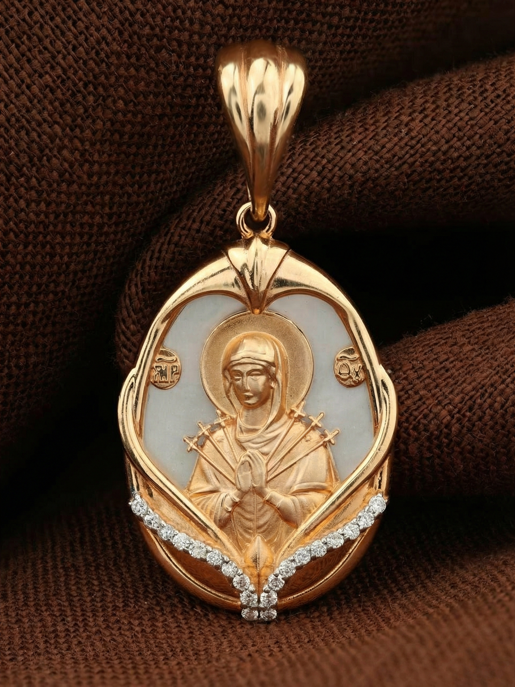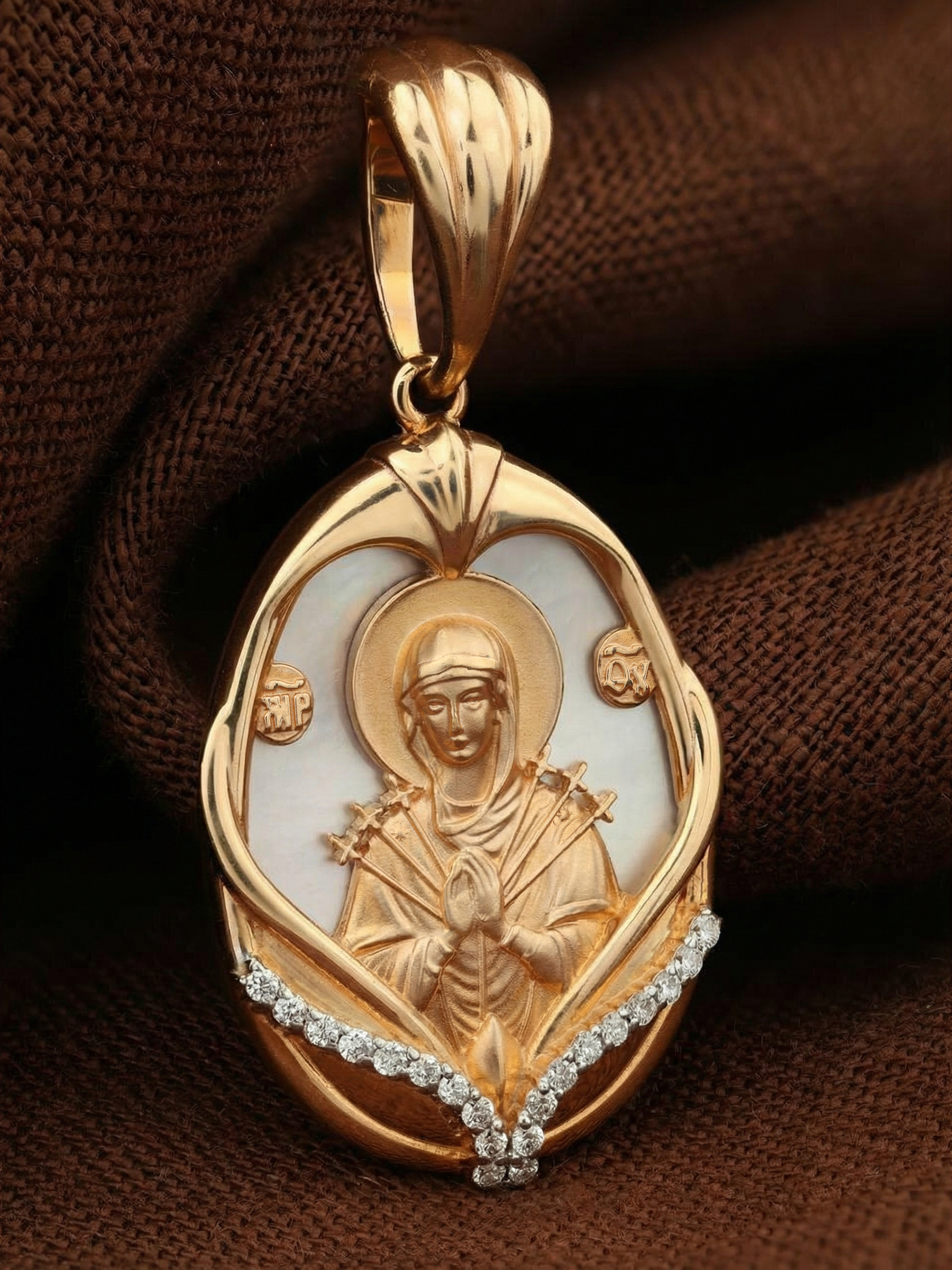 Образок из золота c бриллиантами и перламутром
