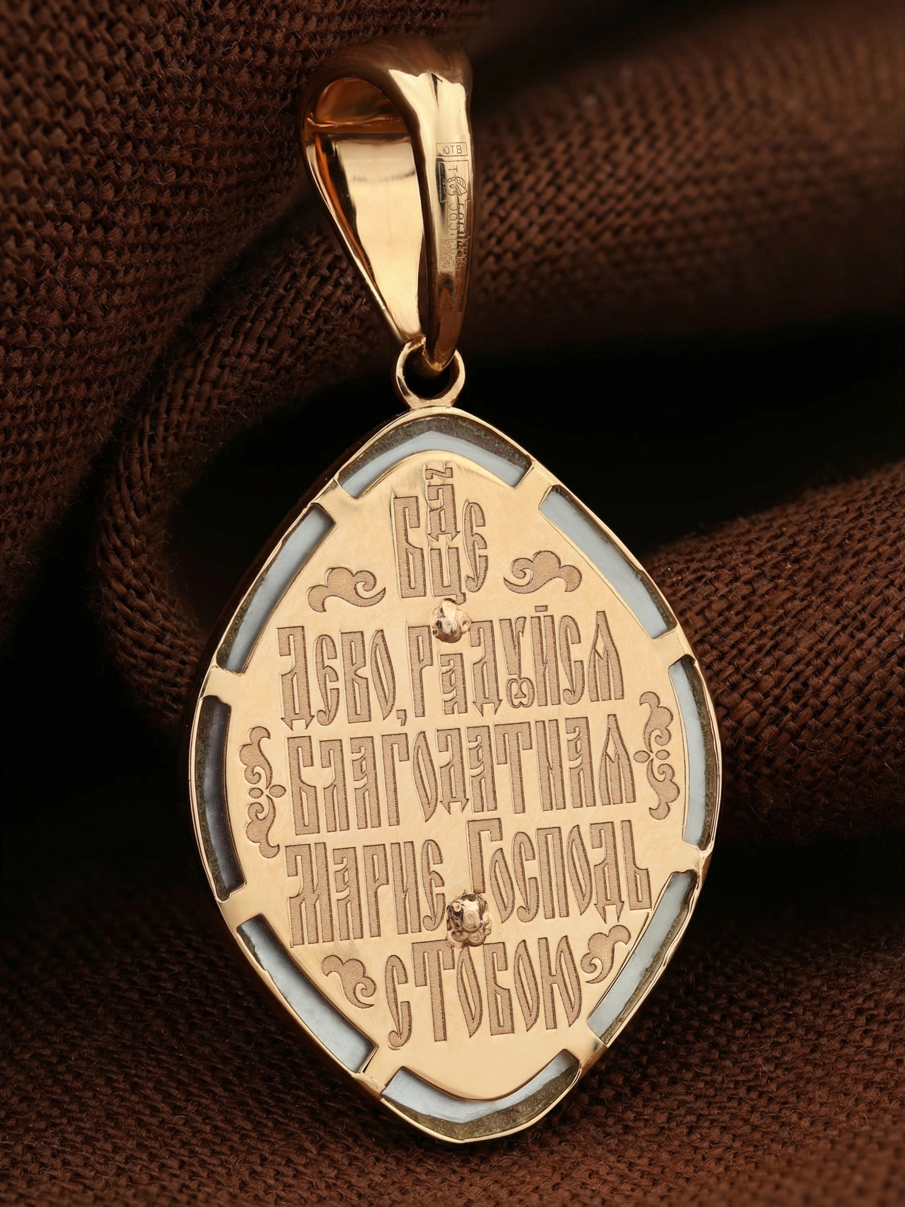 Образок из золота c бриллиантами и перламутром