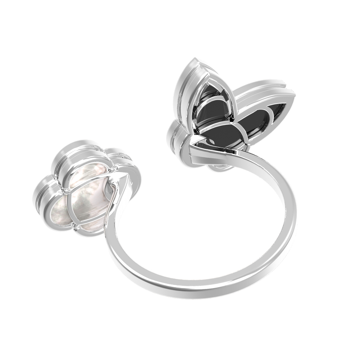 Кольцо из белого золота c ониксом и перламутром
