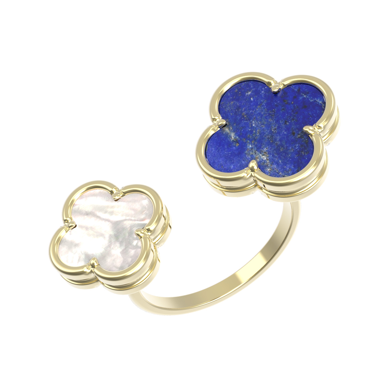 Кольцо из лимонного золота c лазуритом и перламутром