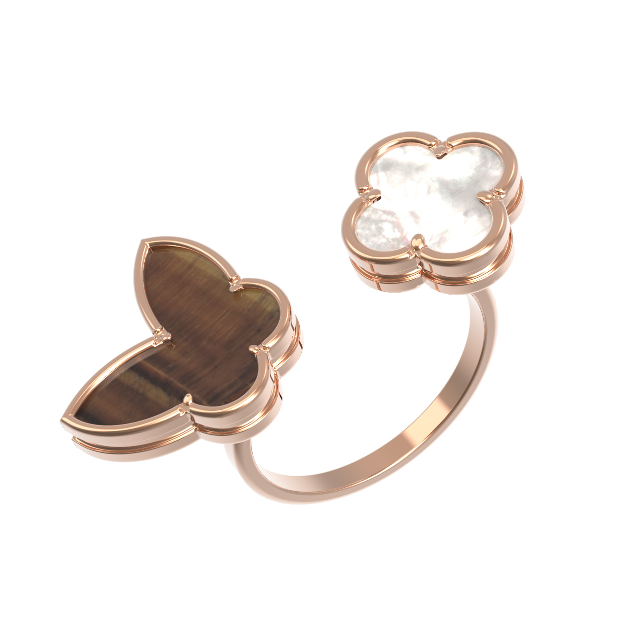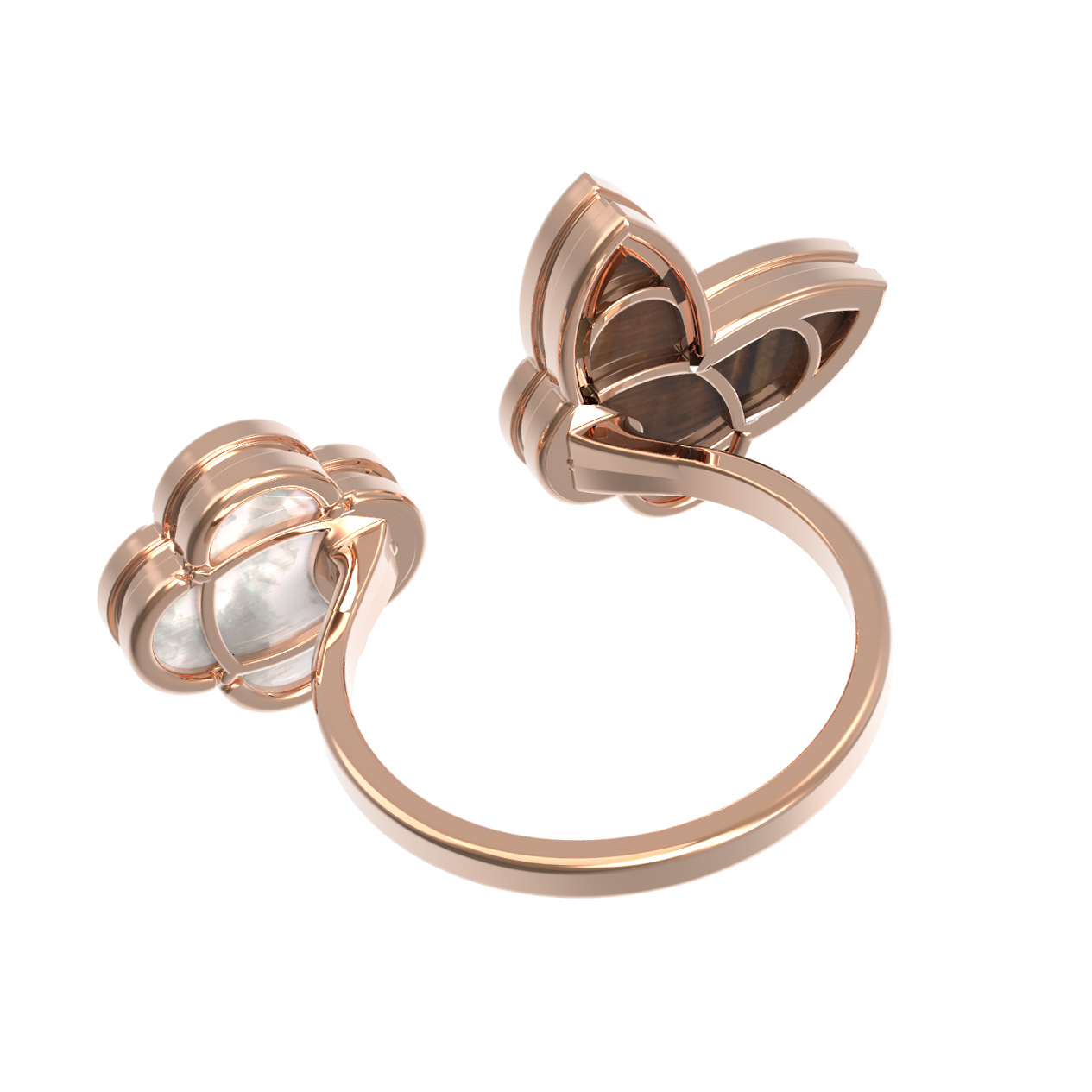 Кольцо из золота c тигровым глазом и перламутром