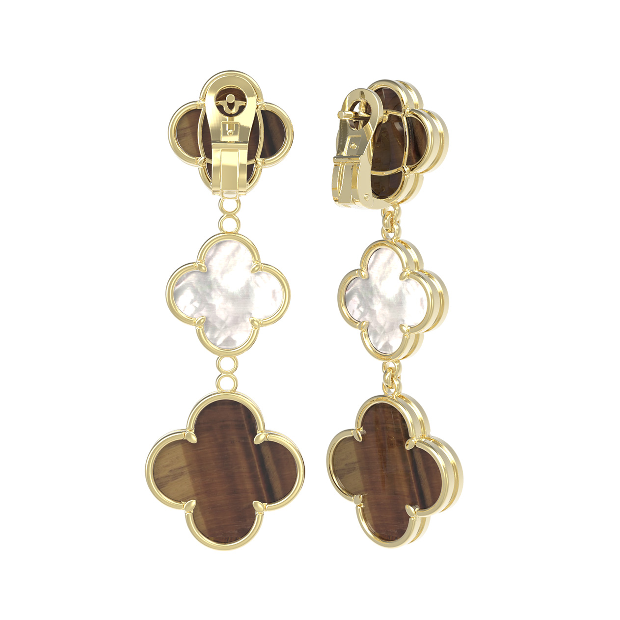 Серьги из лимонного золота c тигровым глазом и перламутром