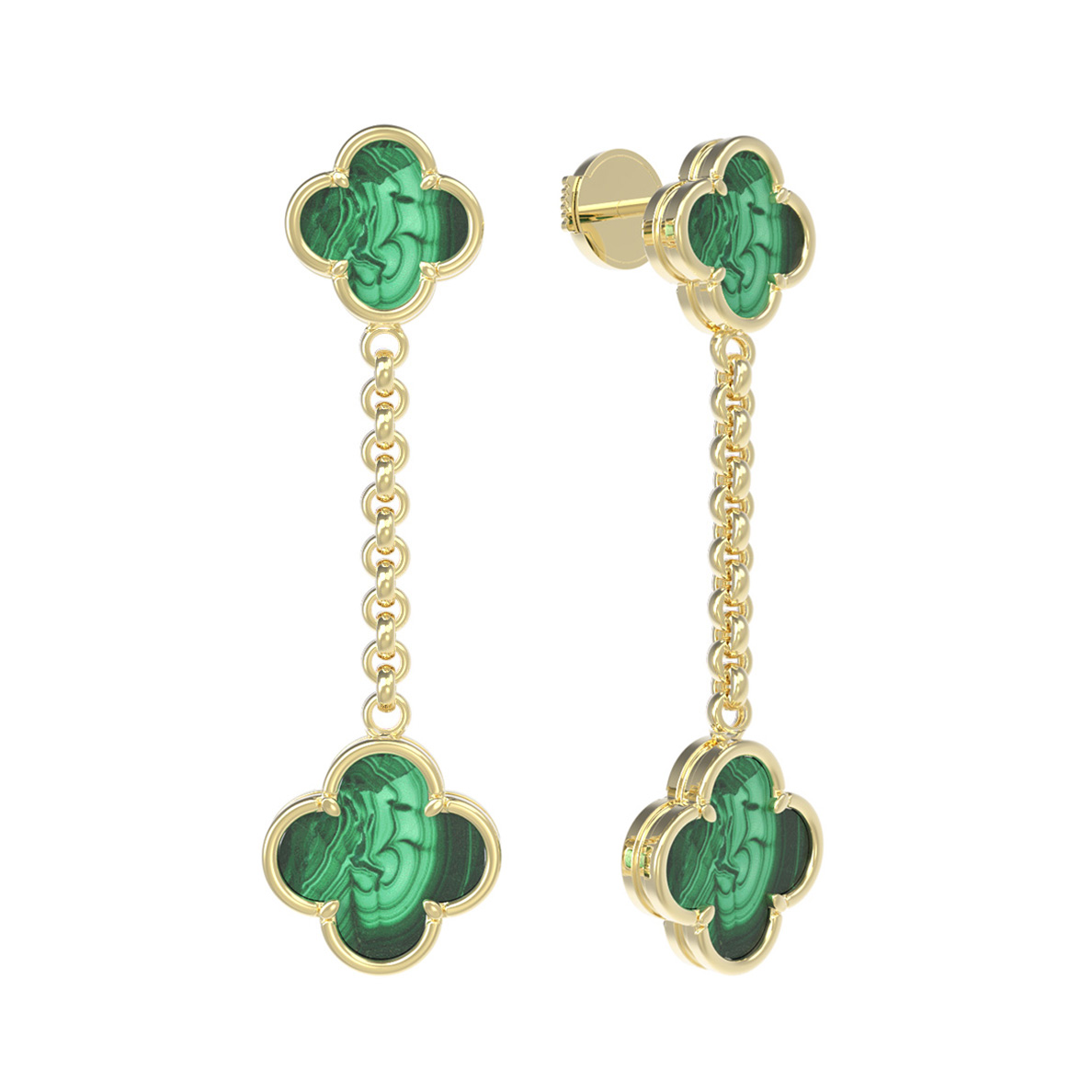 Серьги из лимонного золота c малахитом