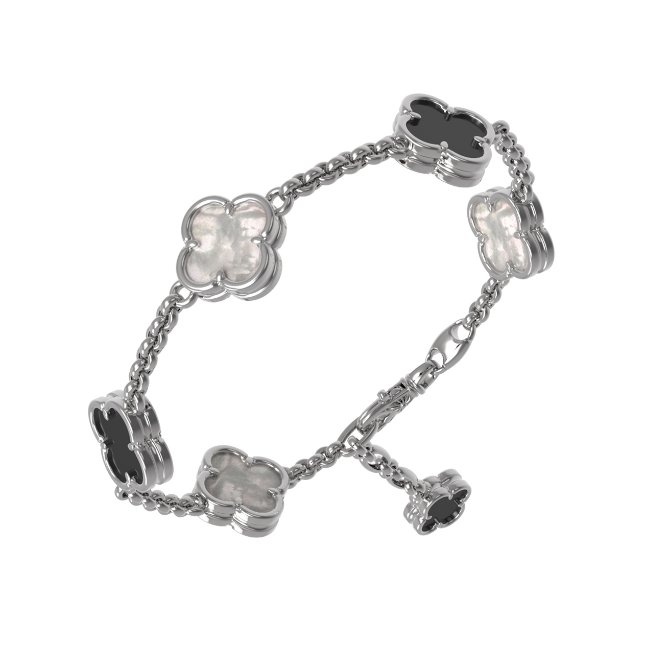 Браслет из белого золота c ониксом и перламутром