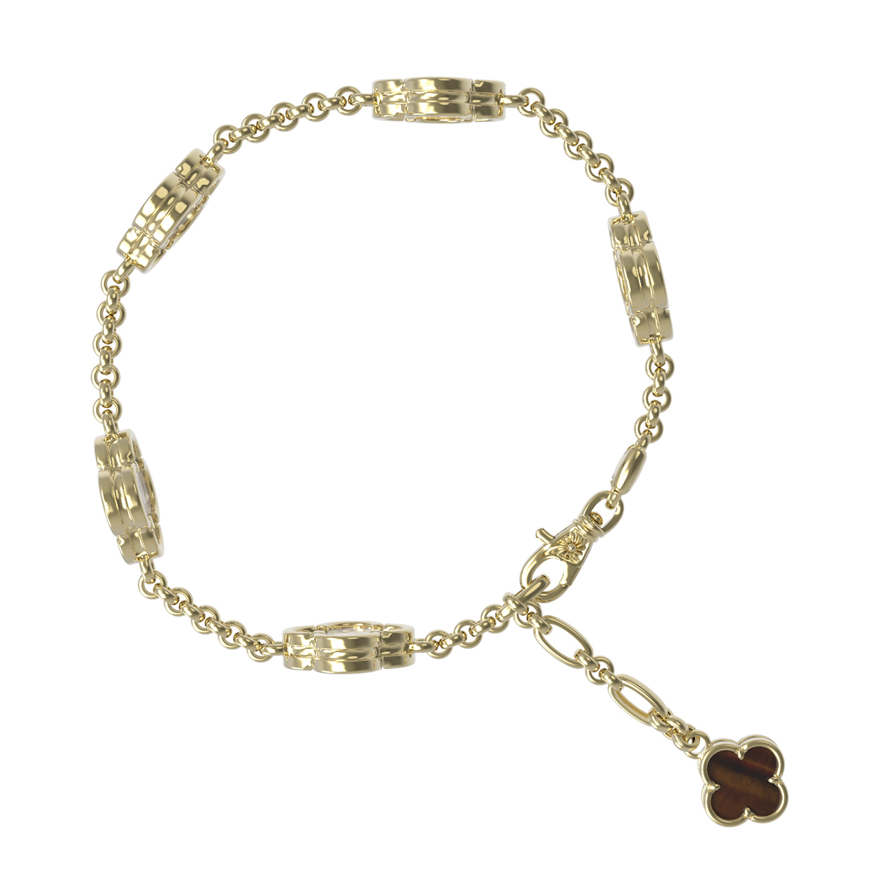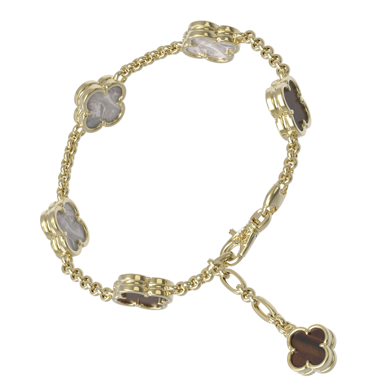 Браслет из лимонного золота c тигровым глазом и перламутром