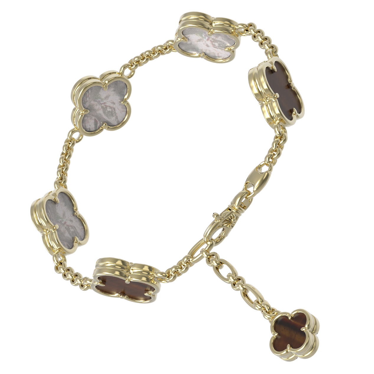 Браслет из лимонного золота c тигровым глазом и перламутром