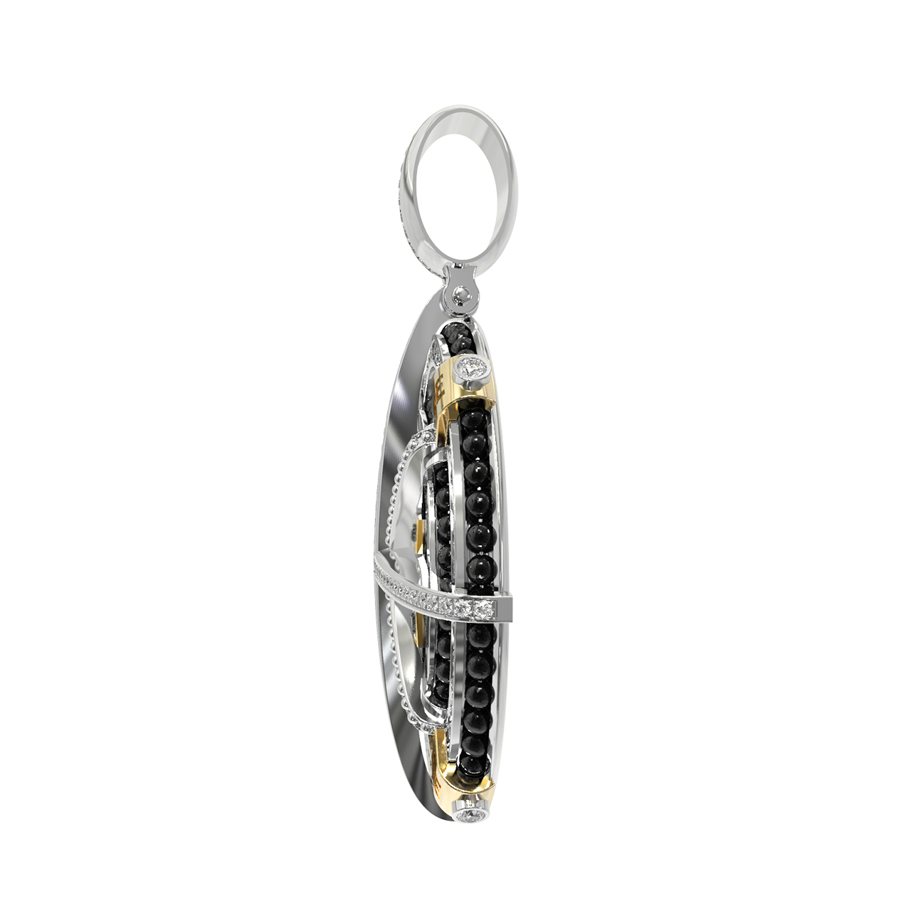 Подвеска из белого золота c эмалью, бриллиантами и ониксом
