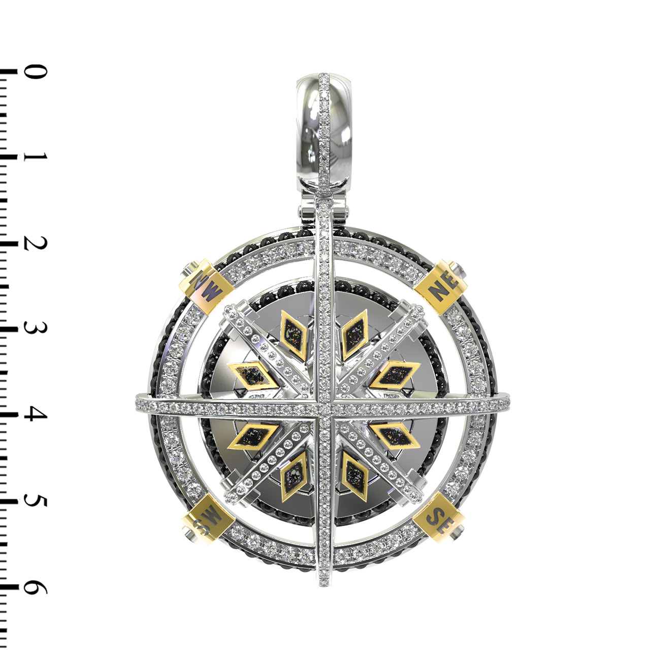 Подвеска из белого золота c эмалью, бриллиантами и ониксом