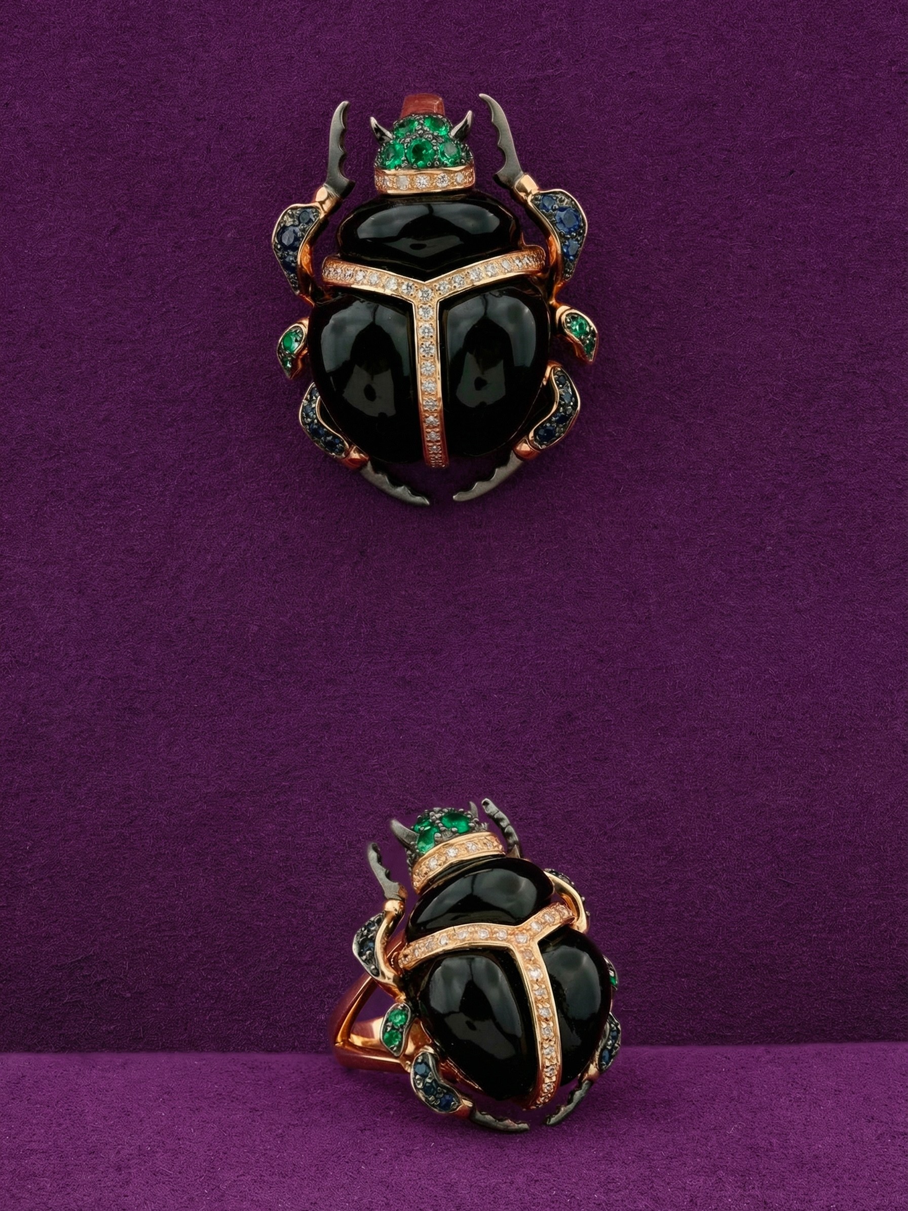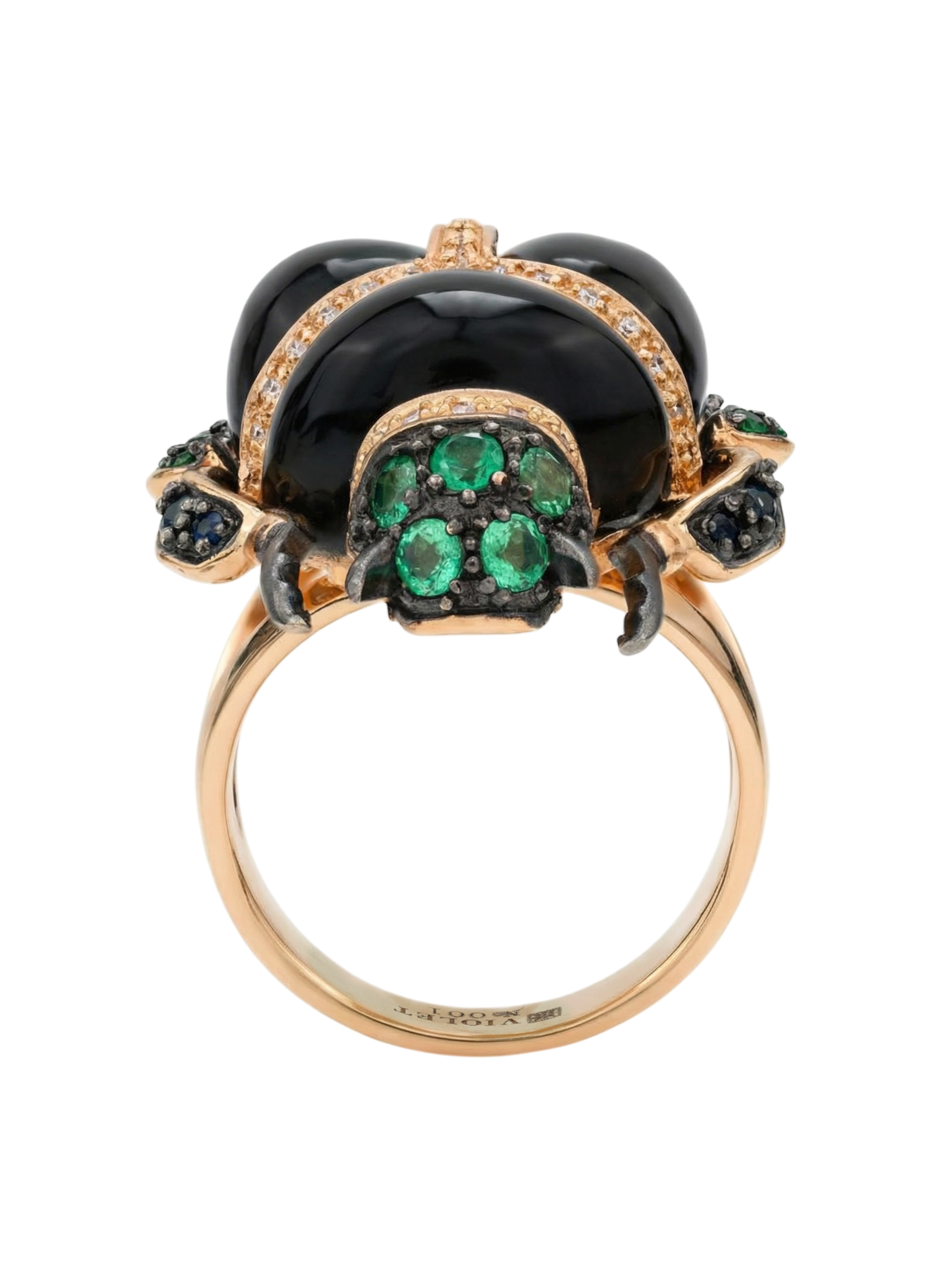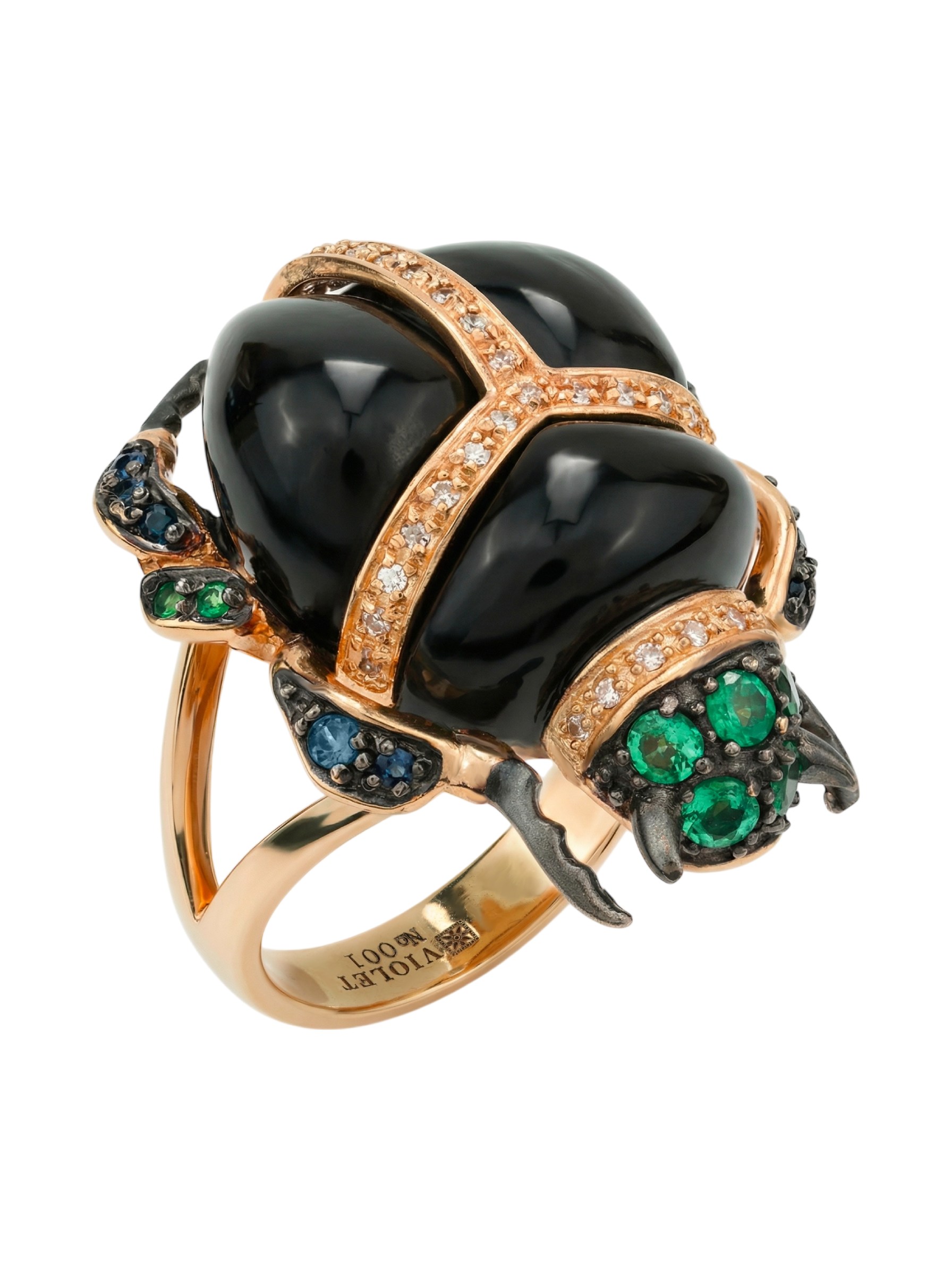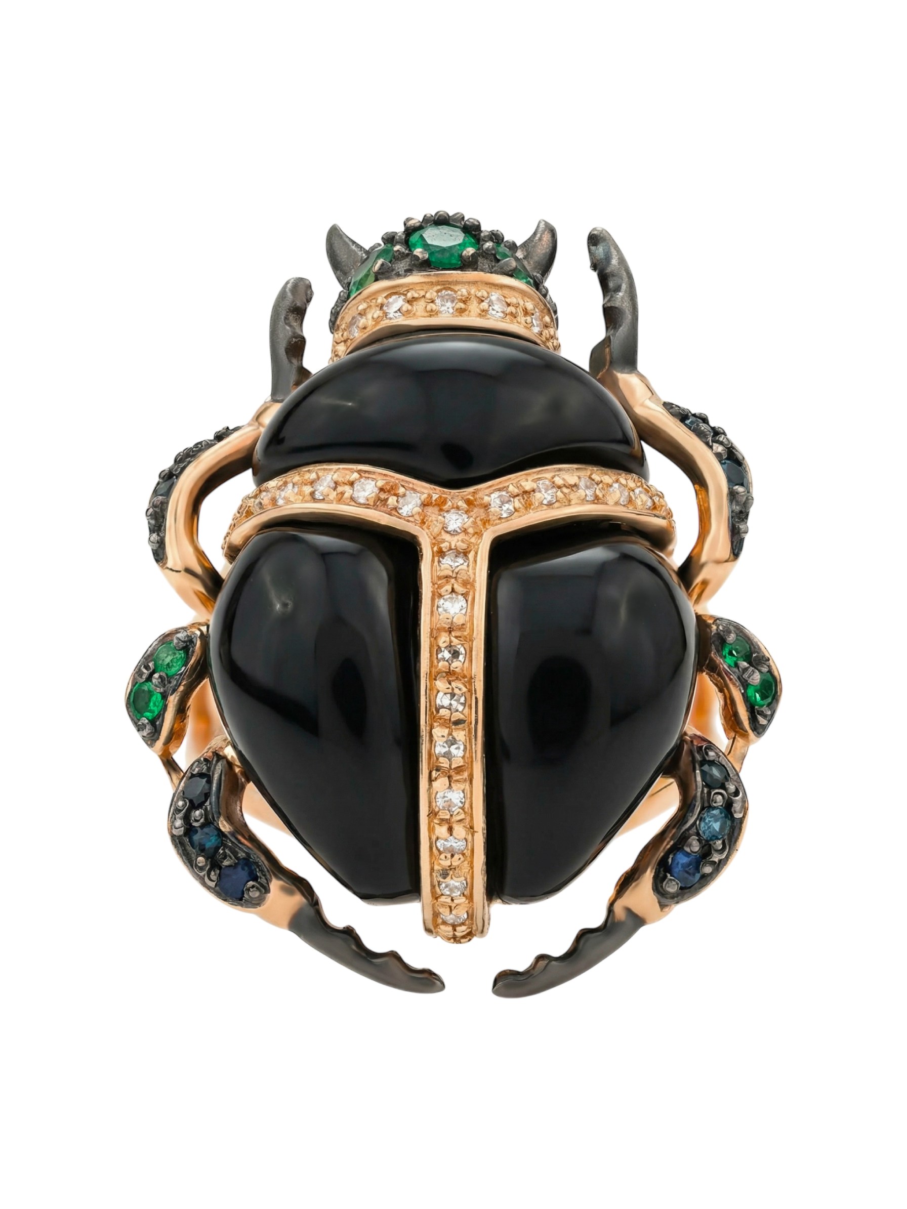 Кольцо из золота c бриллиантами, сапфиром, изумрудом и ониксом