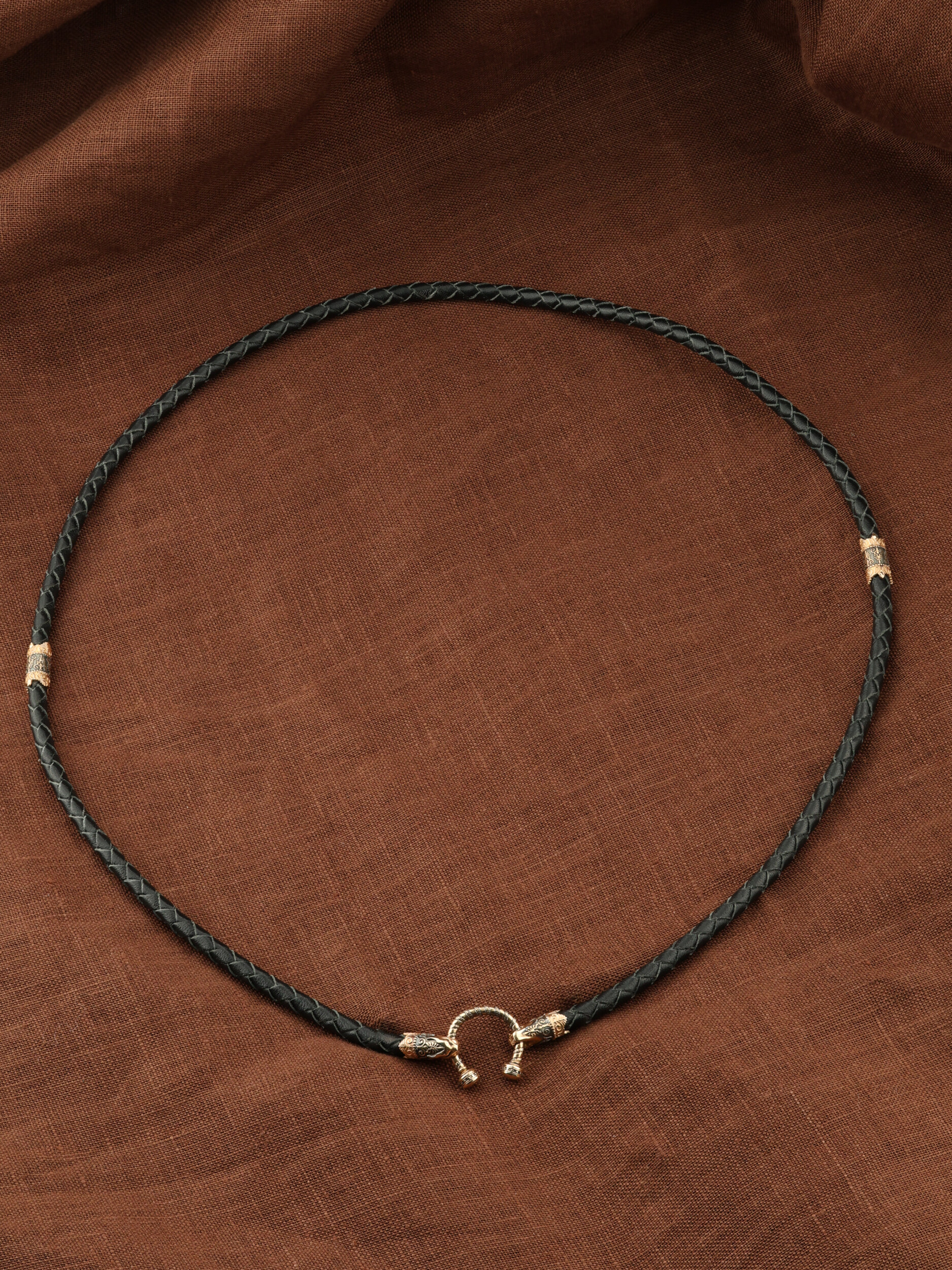 Гайтан из золота c кожаным шнурком