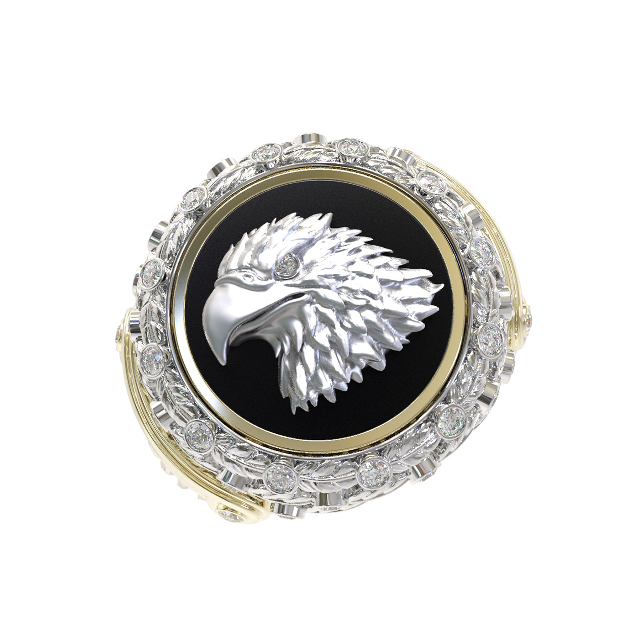 Кольцо из лимонного золота c бриллиантами и ониксом