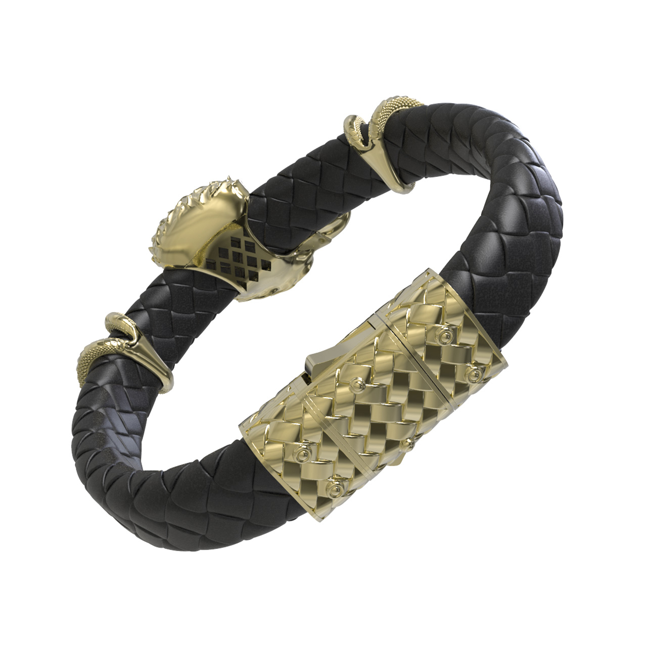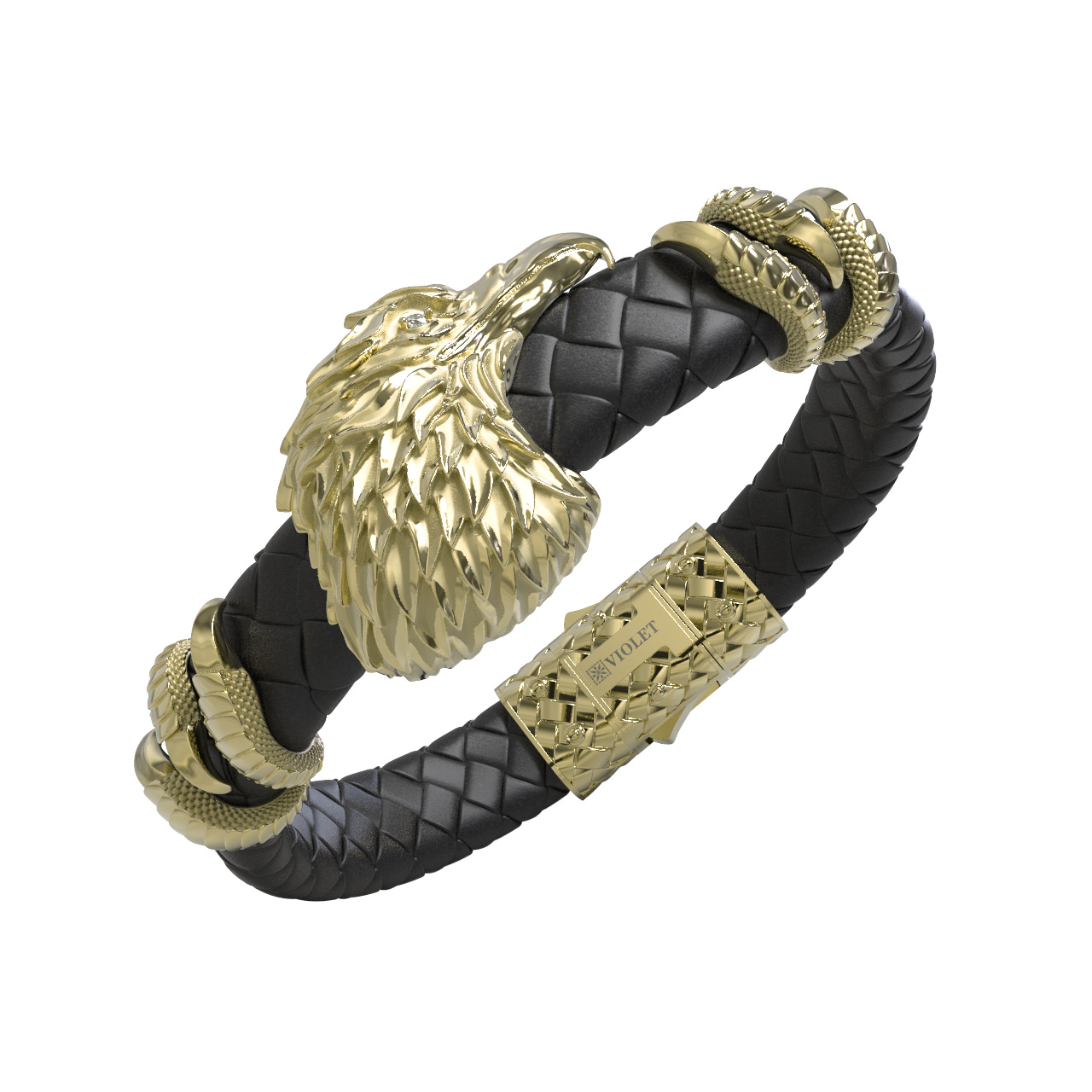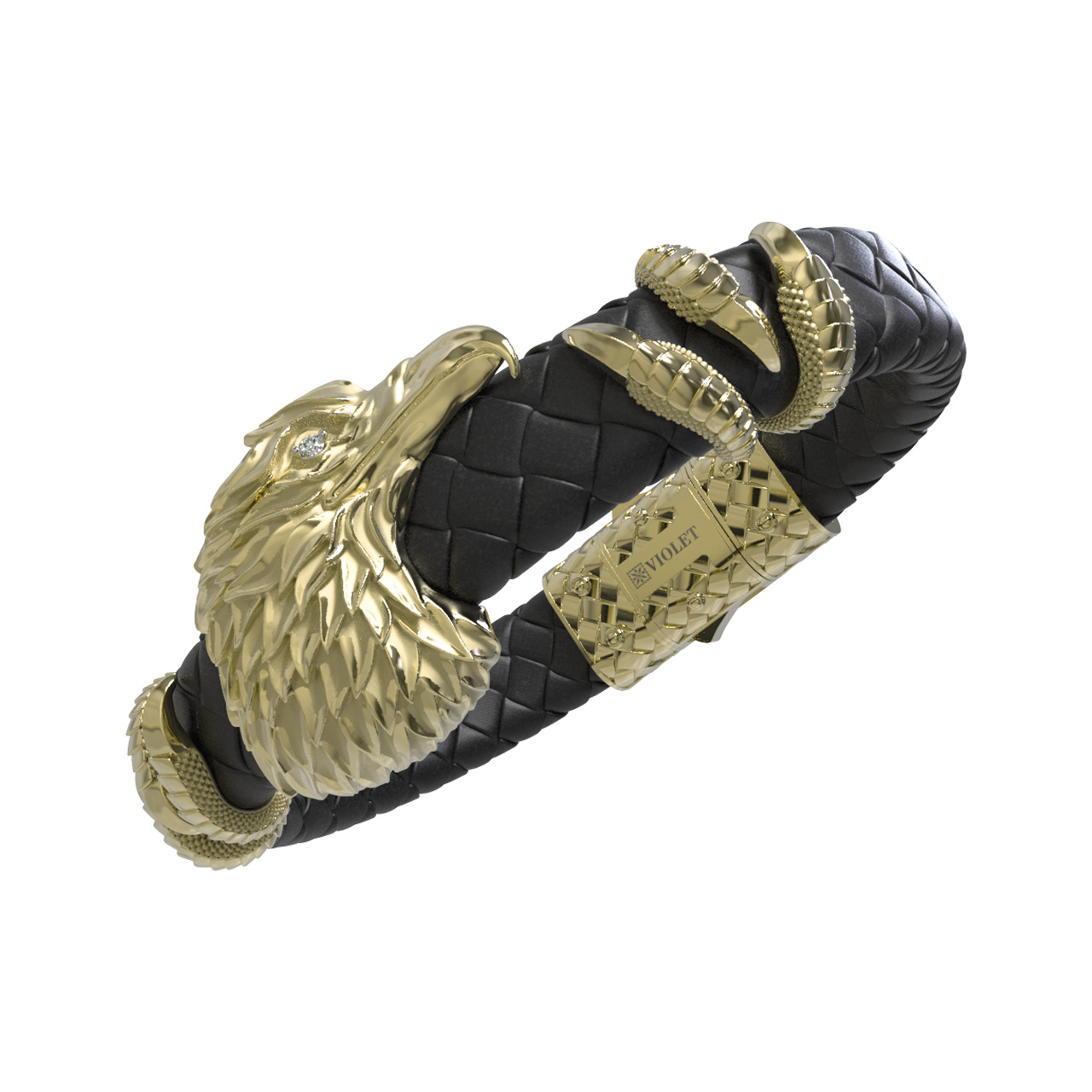 Браслет из лимонного золота c бриллиантами и кожаным шнурком