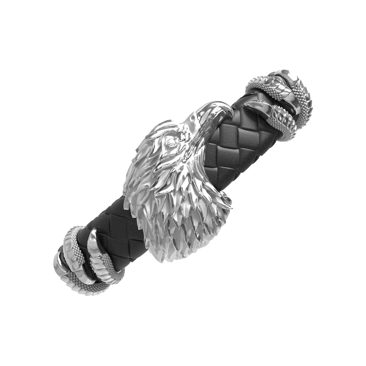 Браслет из белого золота c бриллиантами и кожаным шнурком
