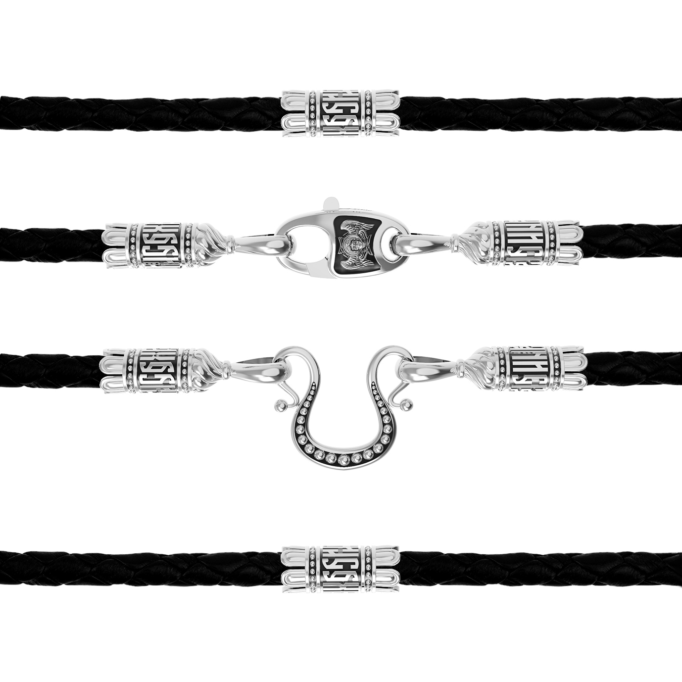 Гайтан из белого золота c кожаным шнурком