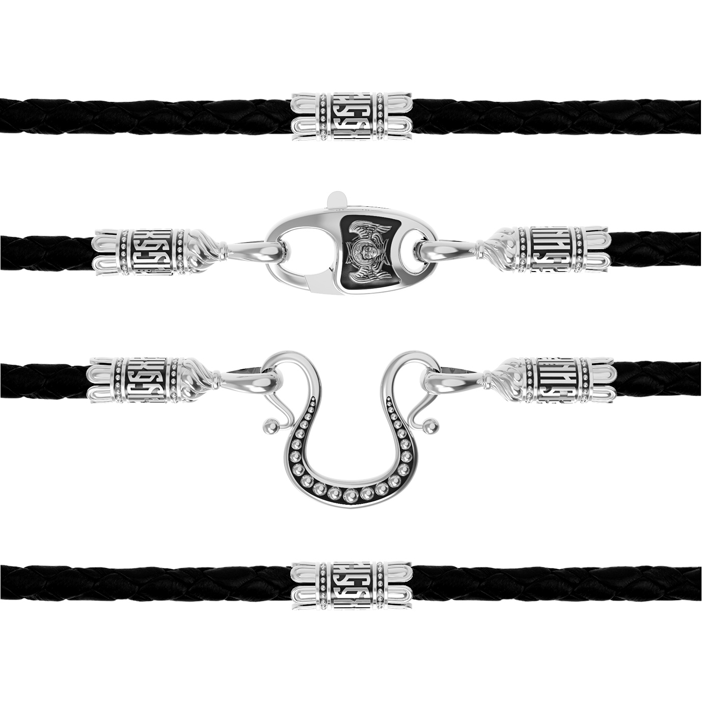 Гайтан из белого золота c кожаным шнурком