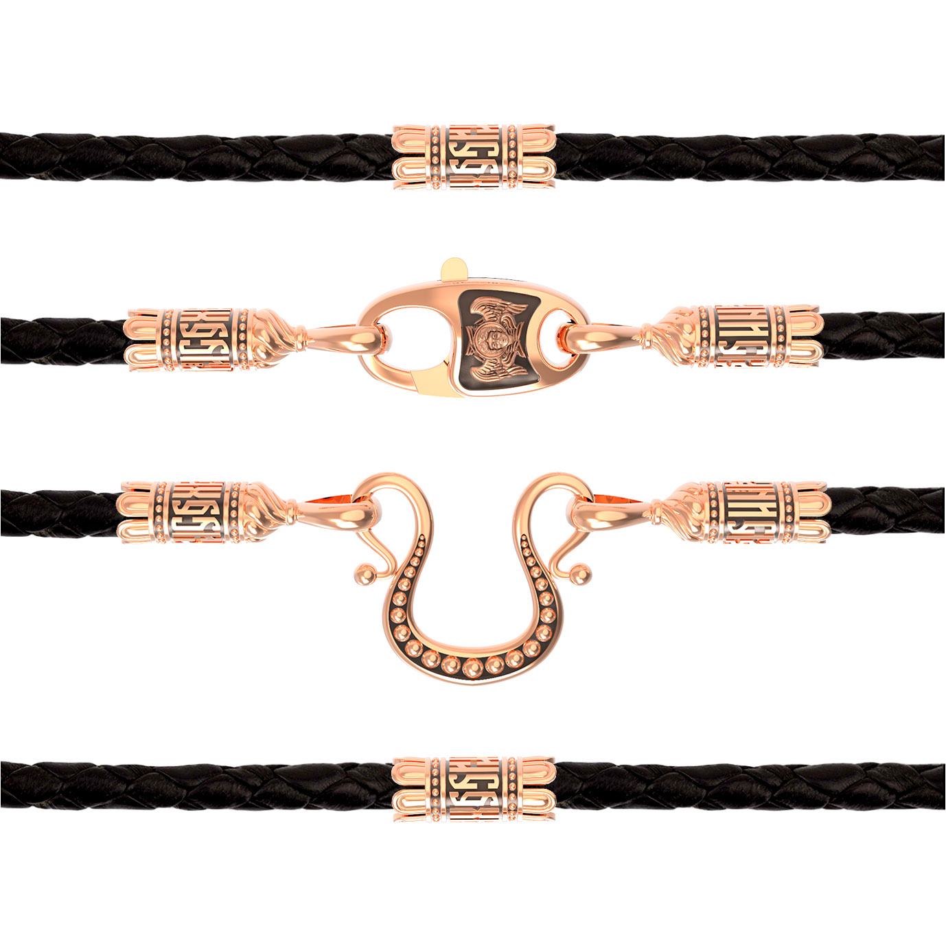 Гайтан из золота c кожаным шнурком