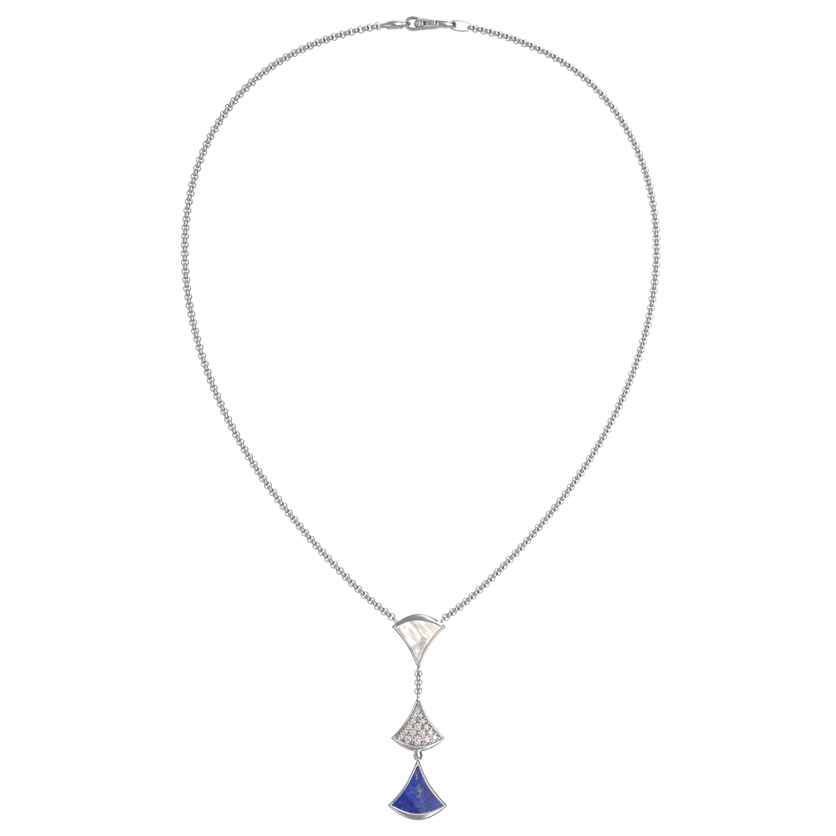 Колье из белого золота c бриллиантами, лазуритом и перламутром