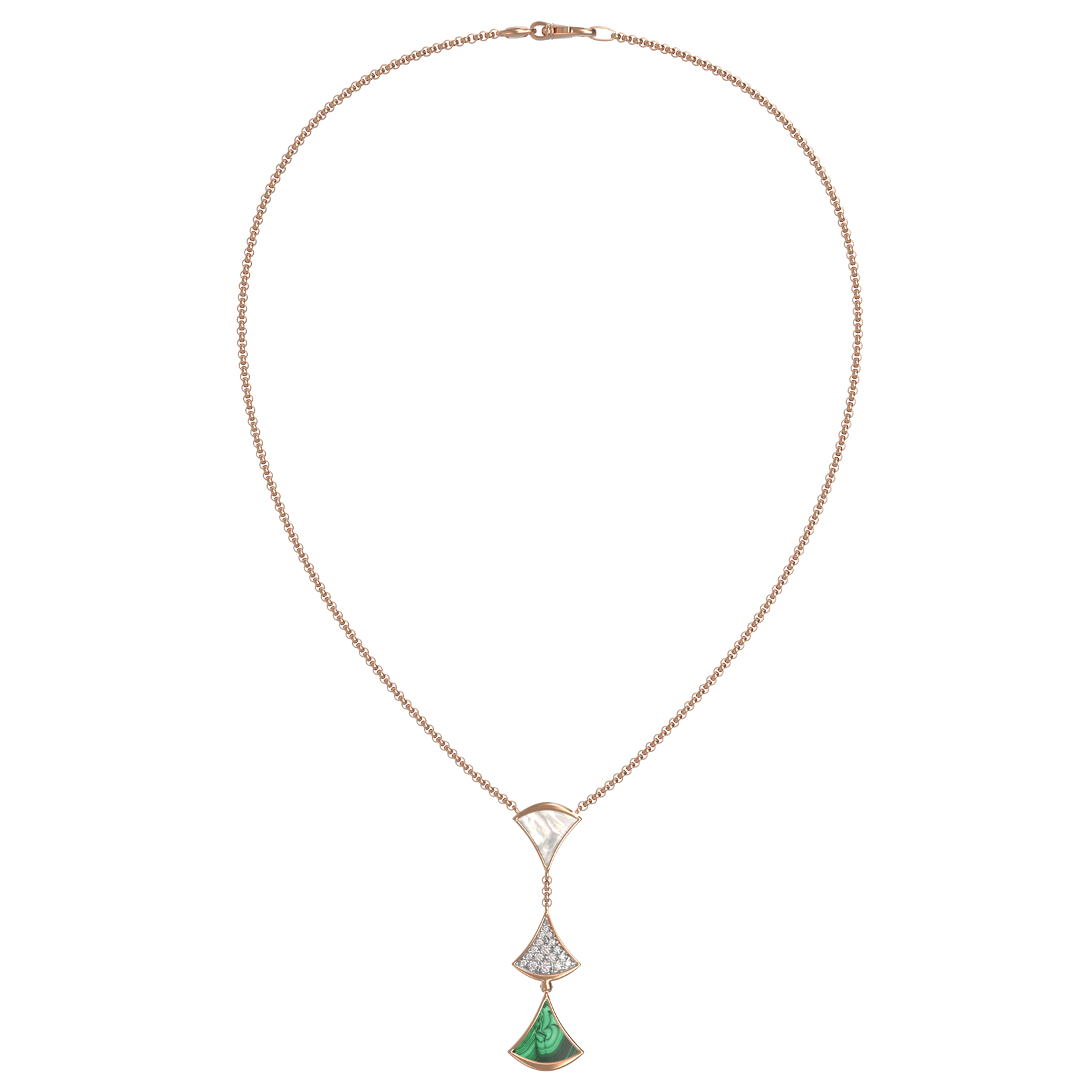 Колье из золота c бриллиантами, малахитом и перламутром