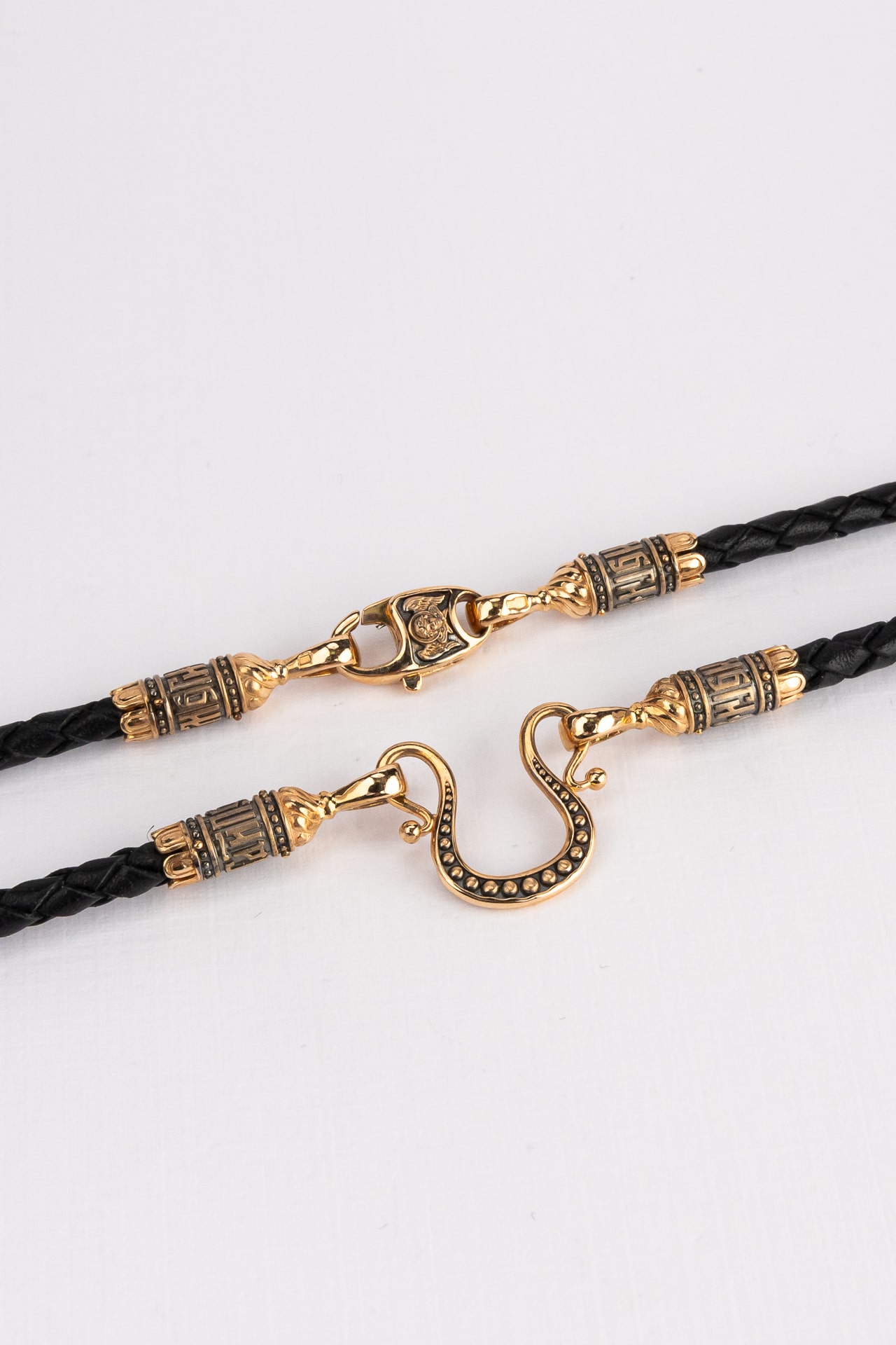 Гайтан из золота c кожаным шнурком