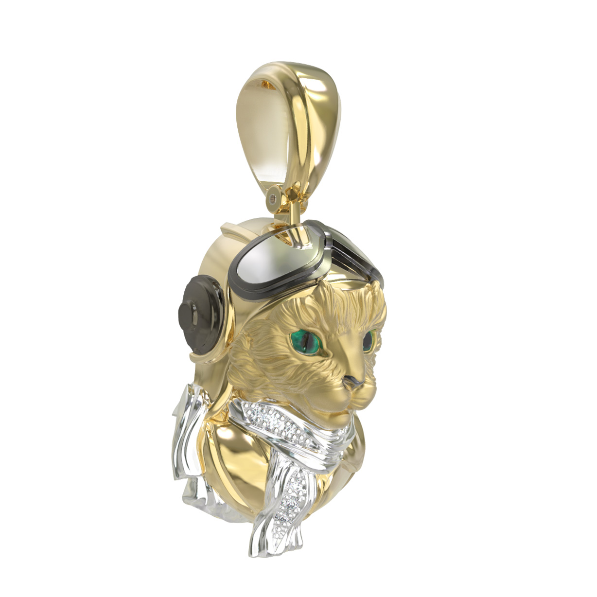 Подвеска из лимонного золота c эмалью, бриллиантами и рубином