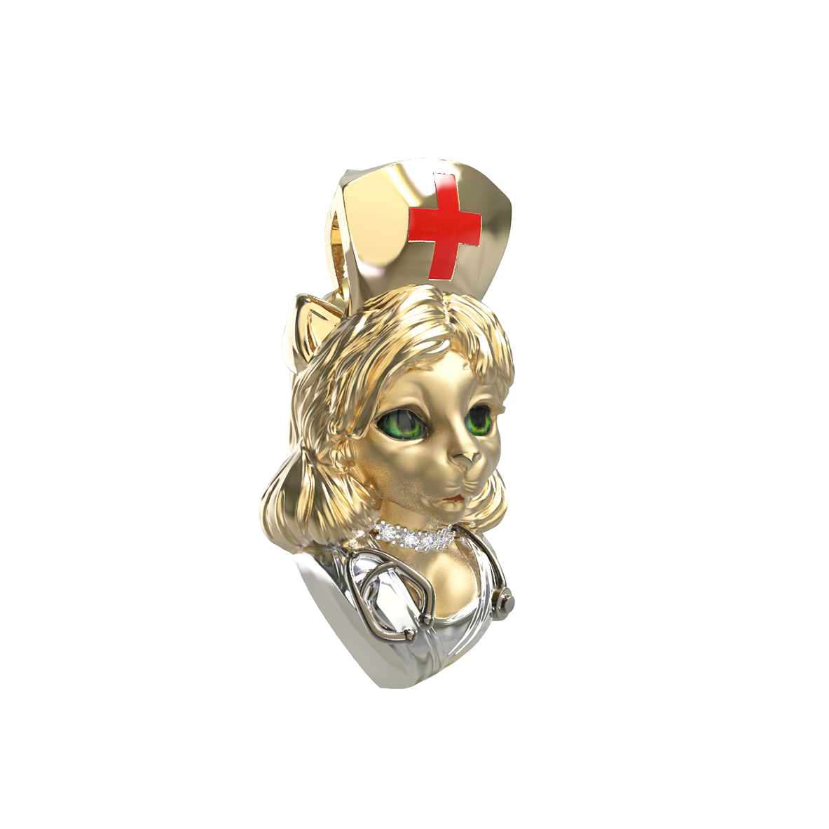 Подвеска из лимонного золота c эмалью, бриллиантами и рубином