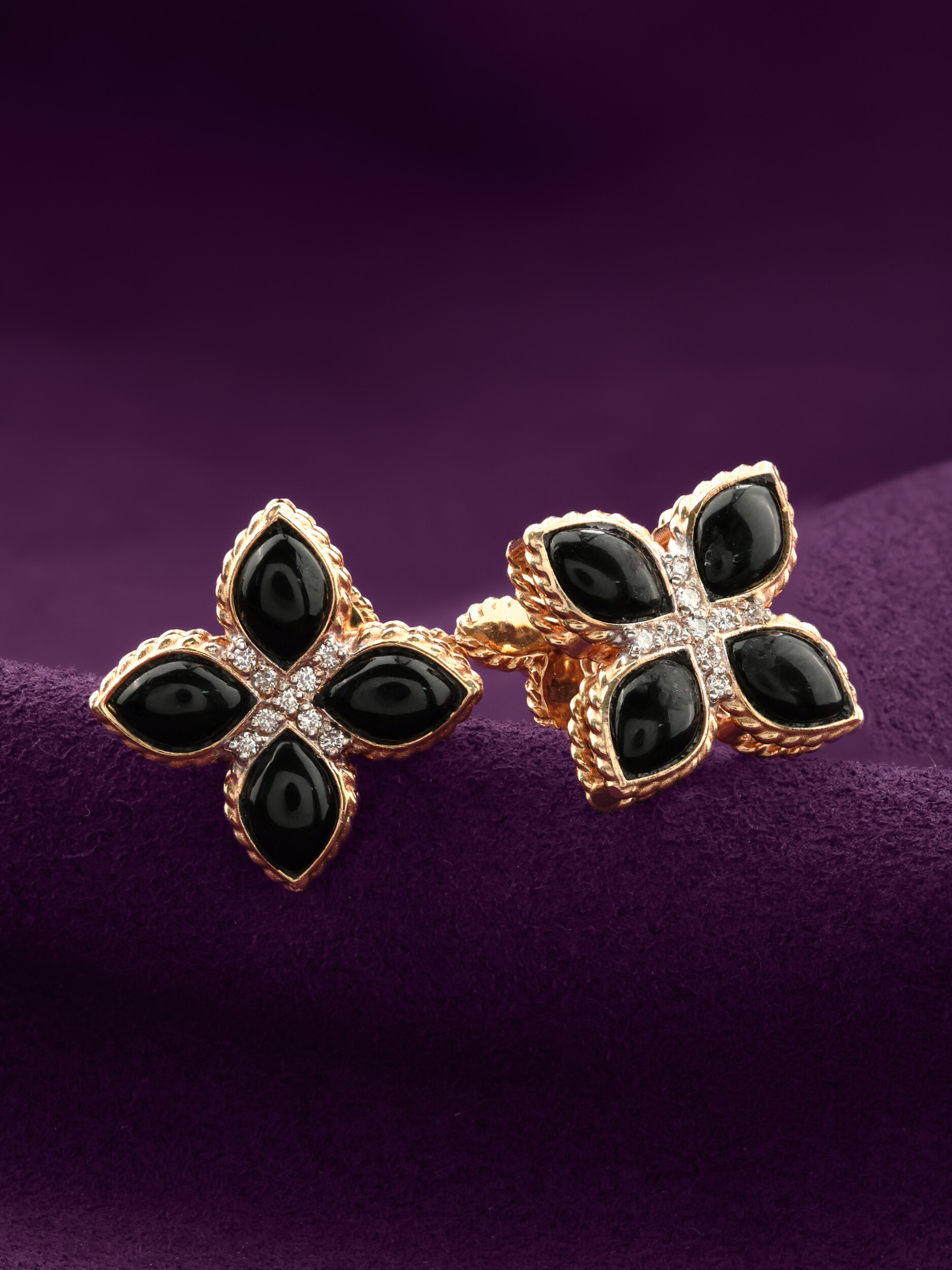 Серьги из золота c бриллиантами и ониксом