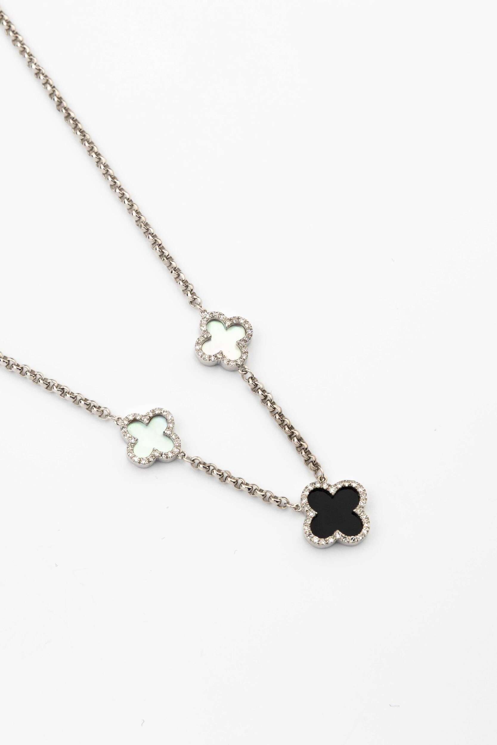 Колье из белого золота c бриллиантами, ониксом и перламутром