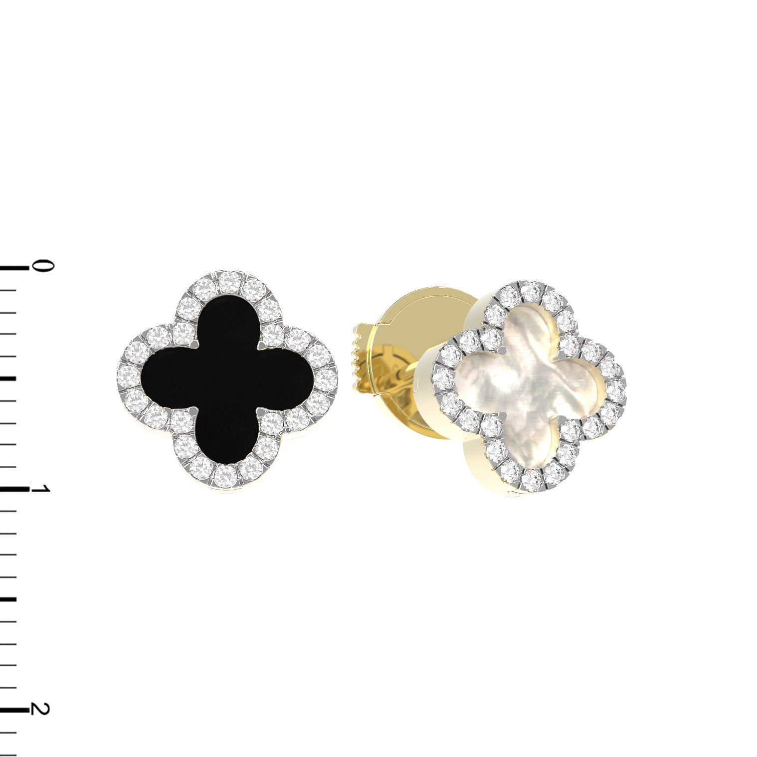 Серьги из лимонного золота c бриллиантами, ониксом и перламутром
