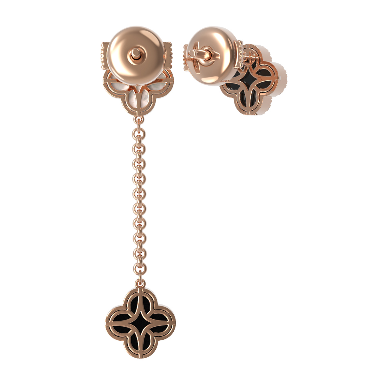 Серьги из золота c бриллиантами, ониксом и перламутром
