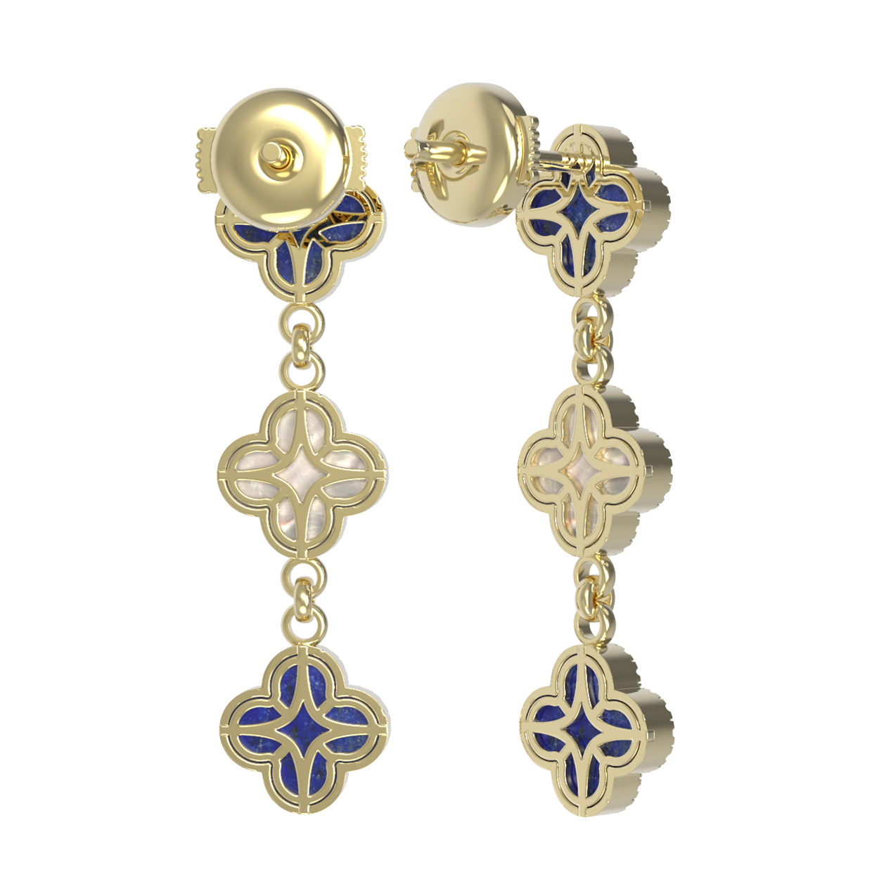 Серьги из лимонного золота c бриллиантами, лазуритом и перламутром