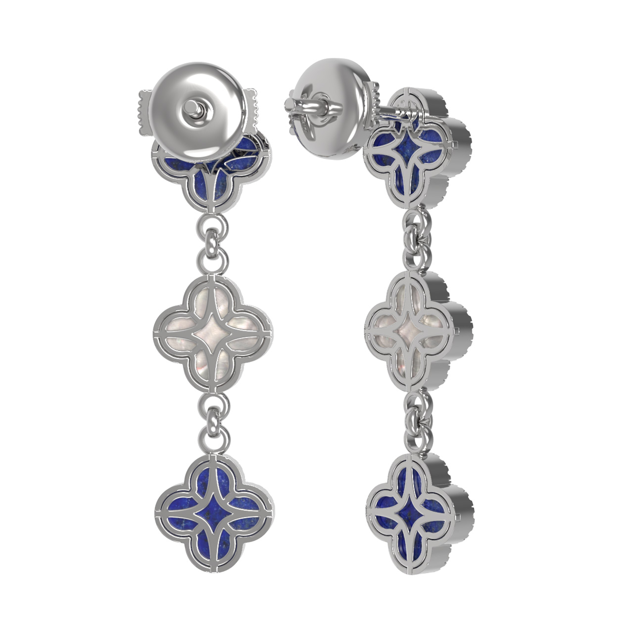 Серьги из белого золота c бриллиантами, лазуритом и перламутром