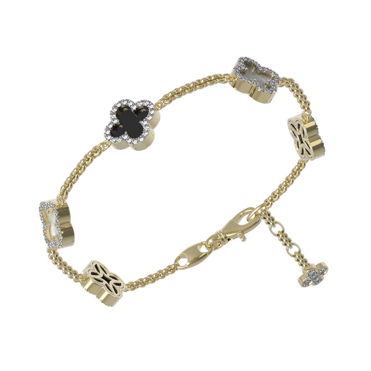 Браслет из лимонного золота c бриллиантами, ониксом и перламутром