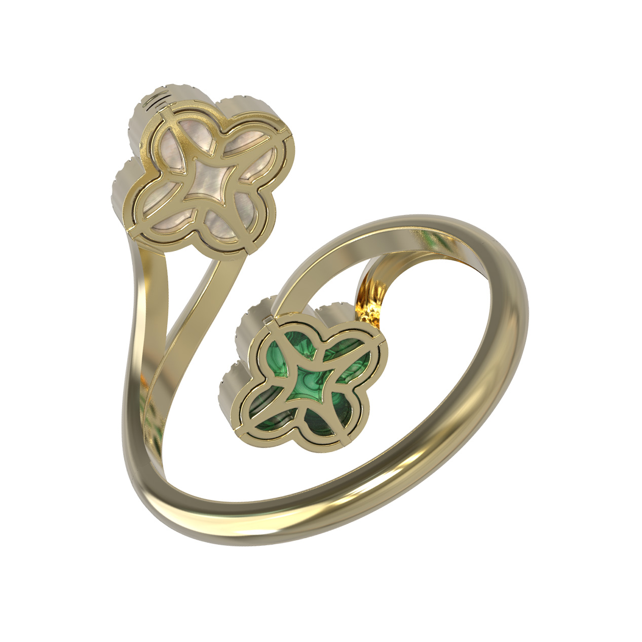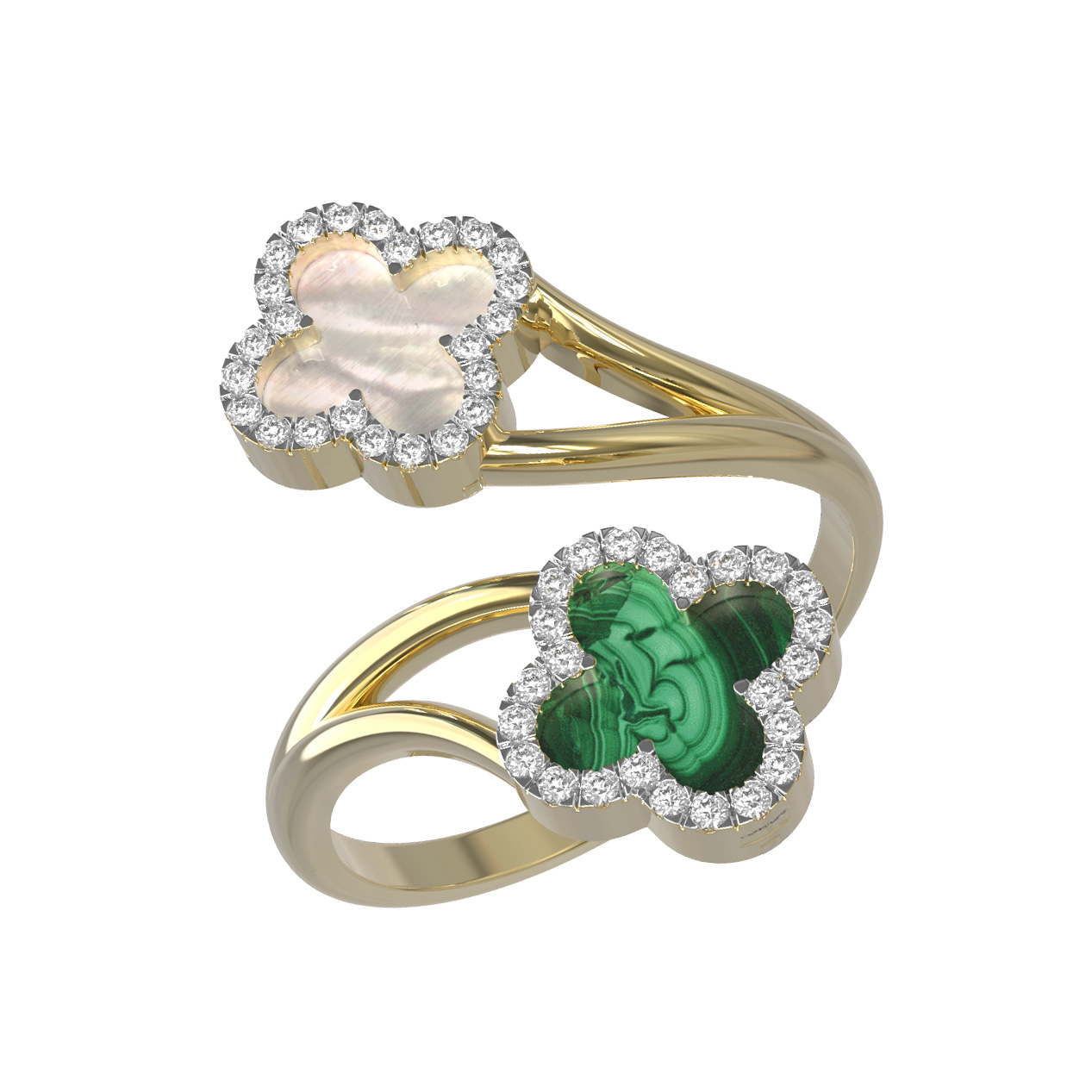 Кольцо из лимонного золота c бриллиантами, малахитом и перламутром