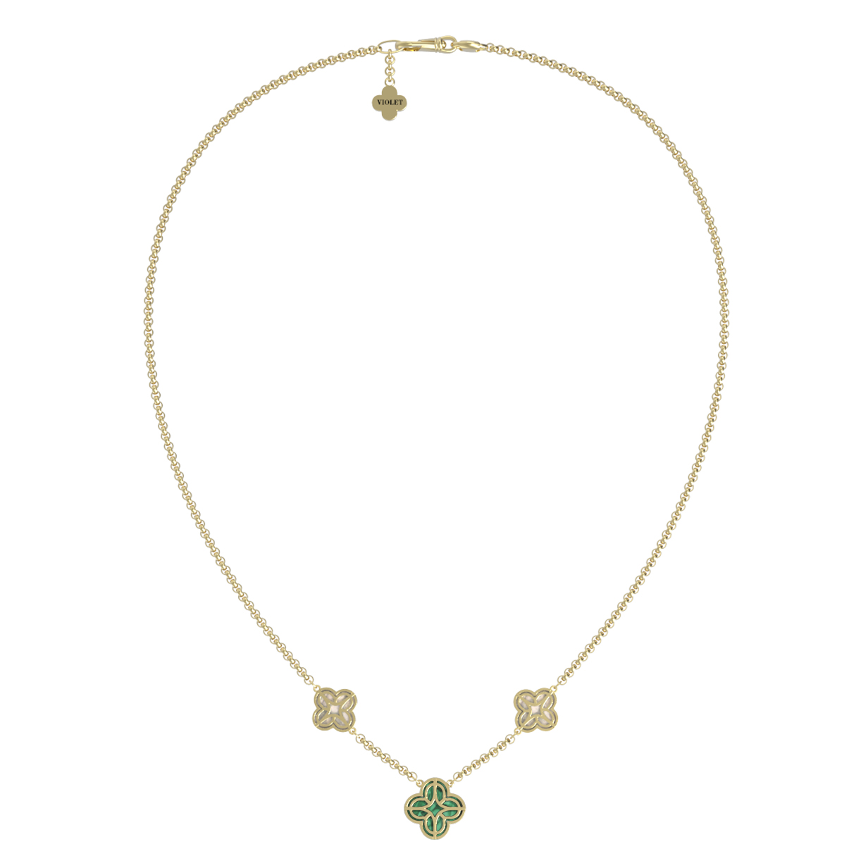 Колье из лимонного золота c бриллиантами, малахитом и перламутром