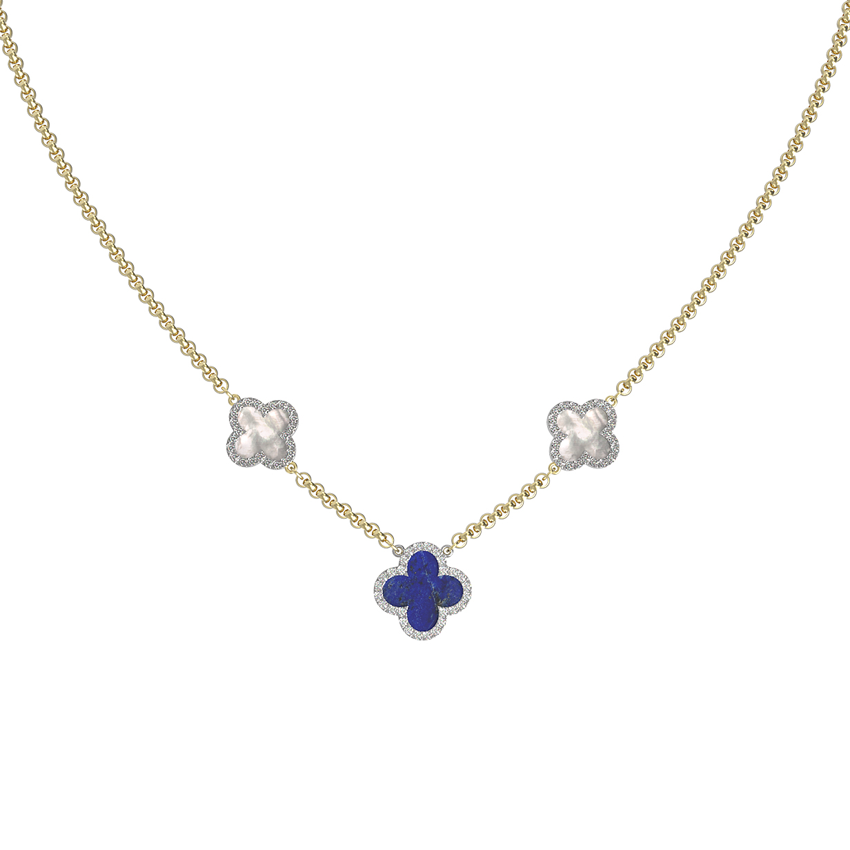 Колье из лимонного золота c бриллиантами, лазуритом и перламутром