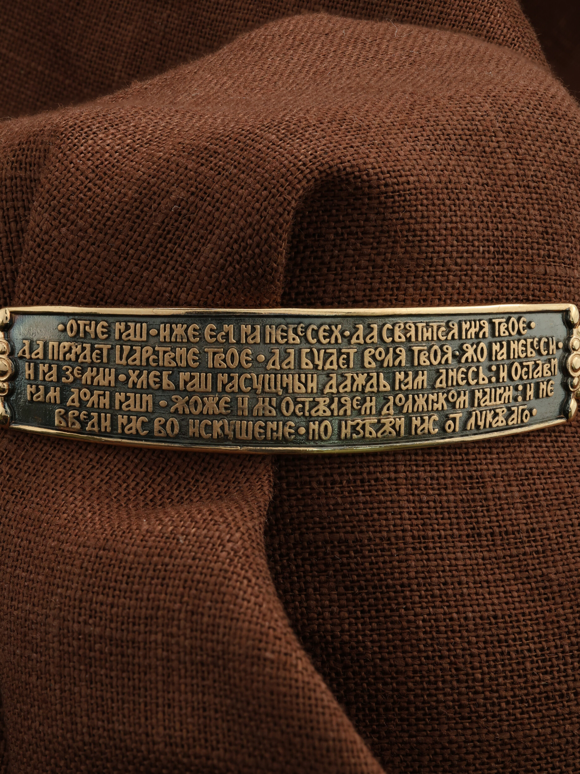 На основном звене написана молитва: «Отче наш, Иже еси на небесех! Да святится имя Твое, да приидет Царствие Твое, да будет воля Твоя, яко на небеси и на земли. Хлеб наш насущный даждь нам днесь; и остави нам долги наша, якоже и мы оставляем должником нашим; и не введи нас во искушение, но избави нас от лукаваго».