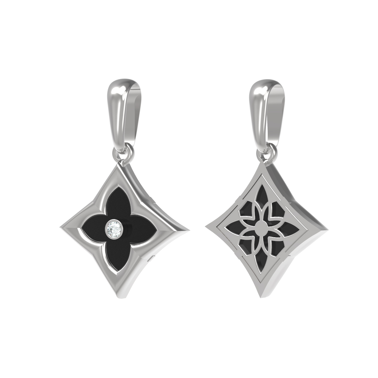 Подвеска из белого золота c бриллиантами и ониксом