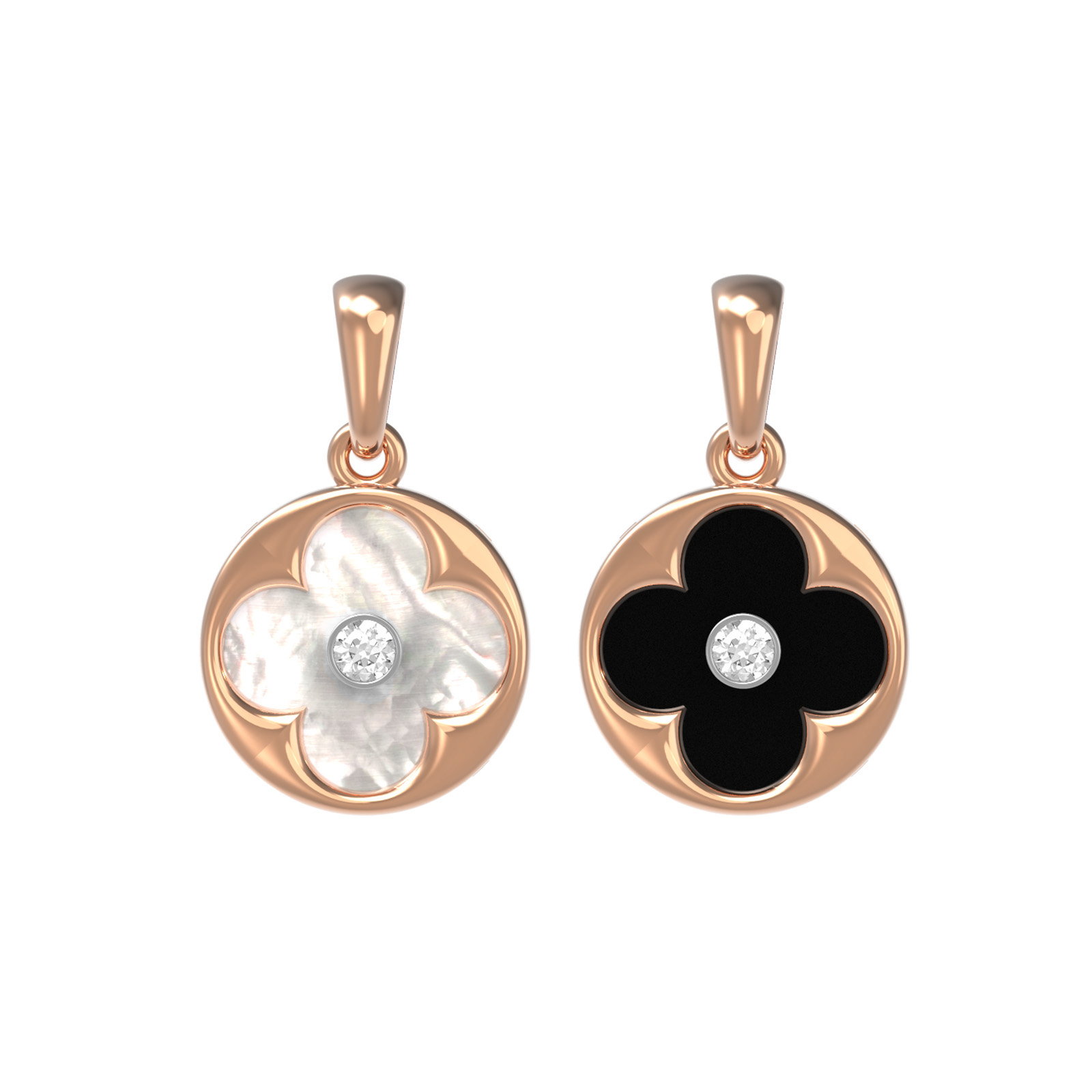 Подвеска из золота c бриллиантами, ониксом и перламутром