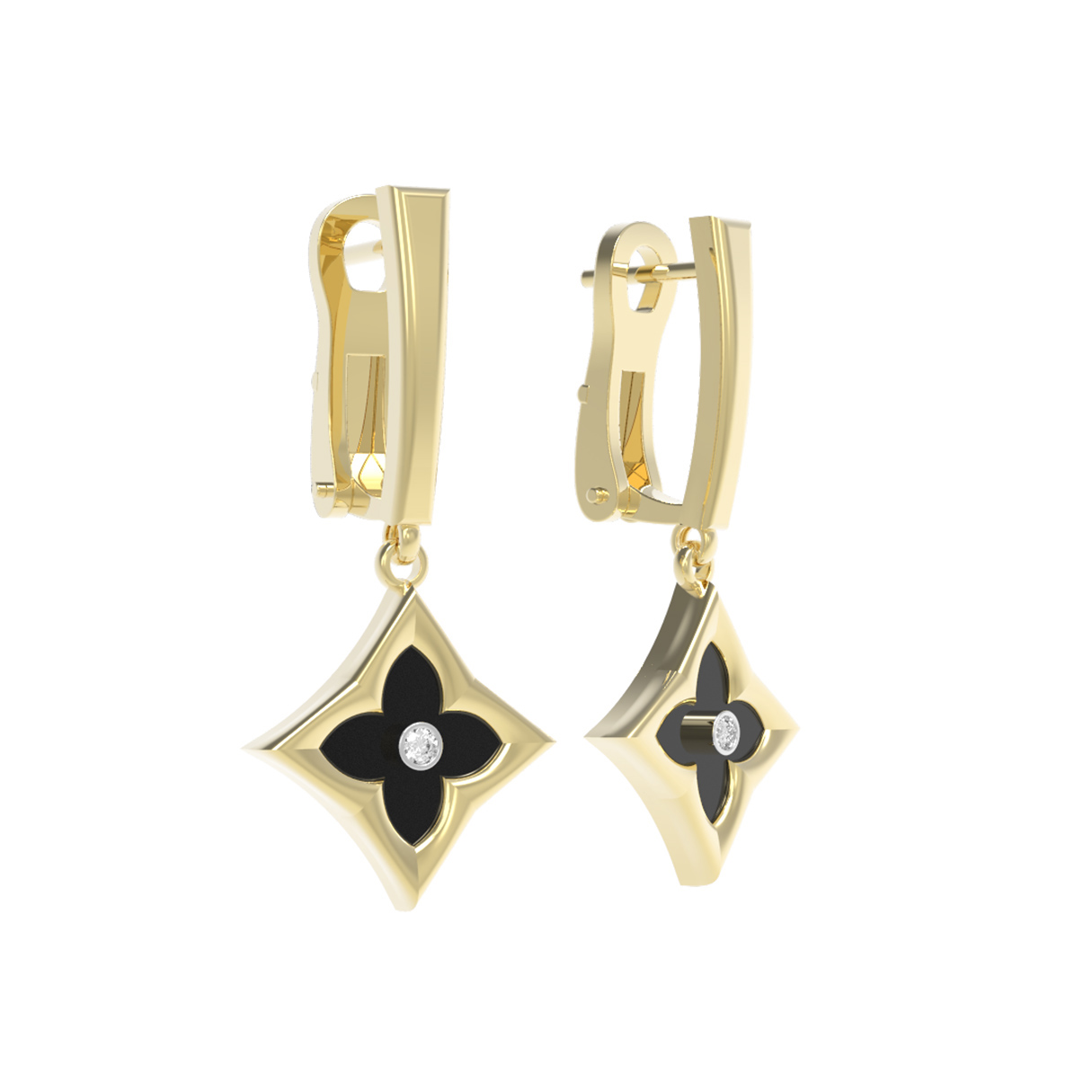 Серьги из лимонного золота c бриллиантами и ониксом