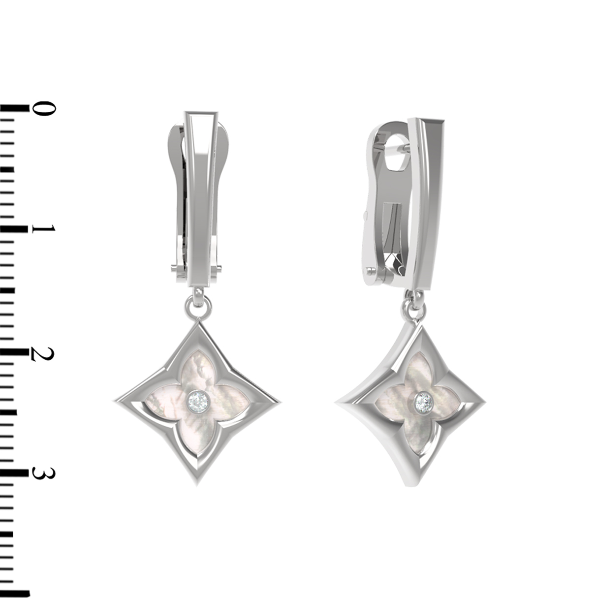 Серьги из белого золота c бриллиантами и перламутром