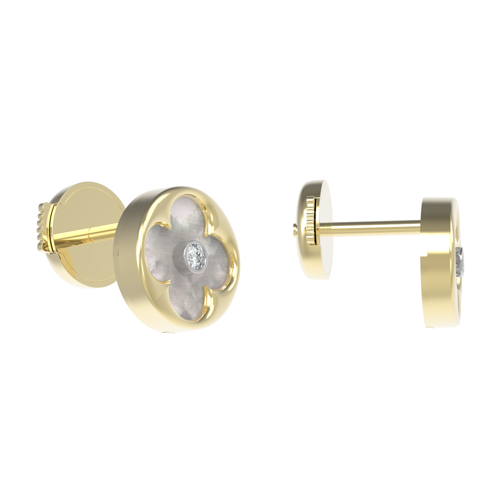 Серьги из лимонного золота c бриллиантами и перламутром
