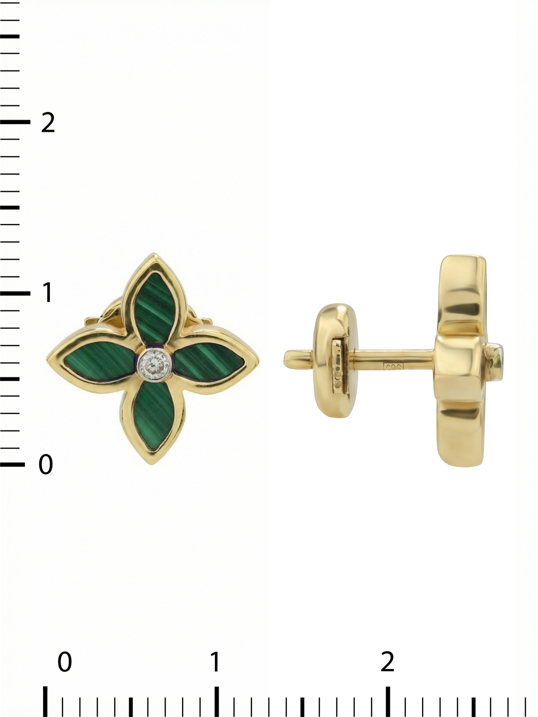 Серьги из лимонного золота c бриллиантами и малахитом