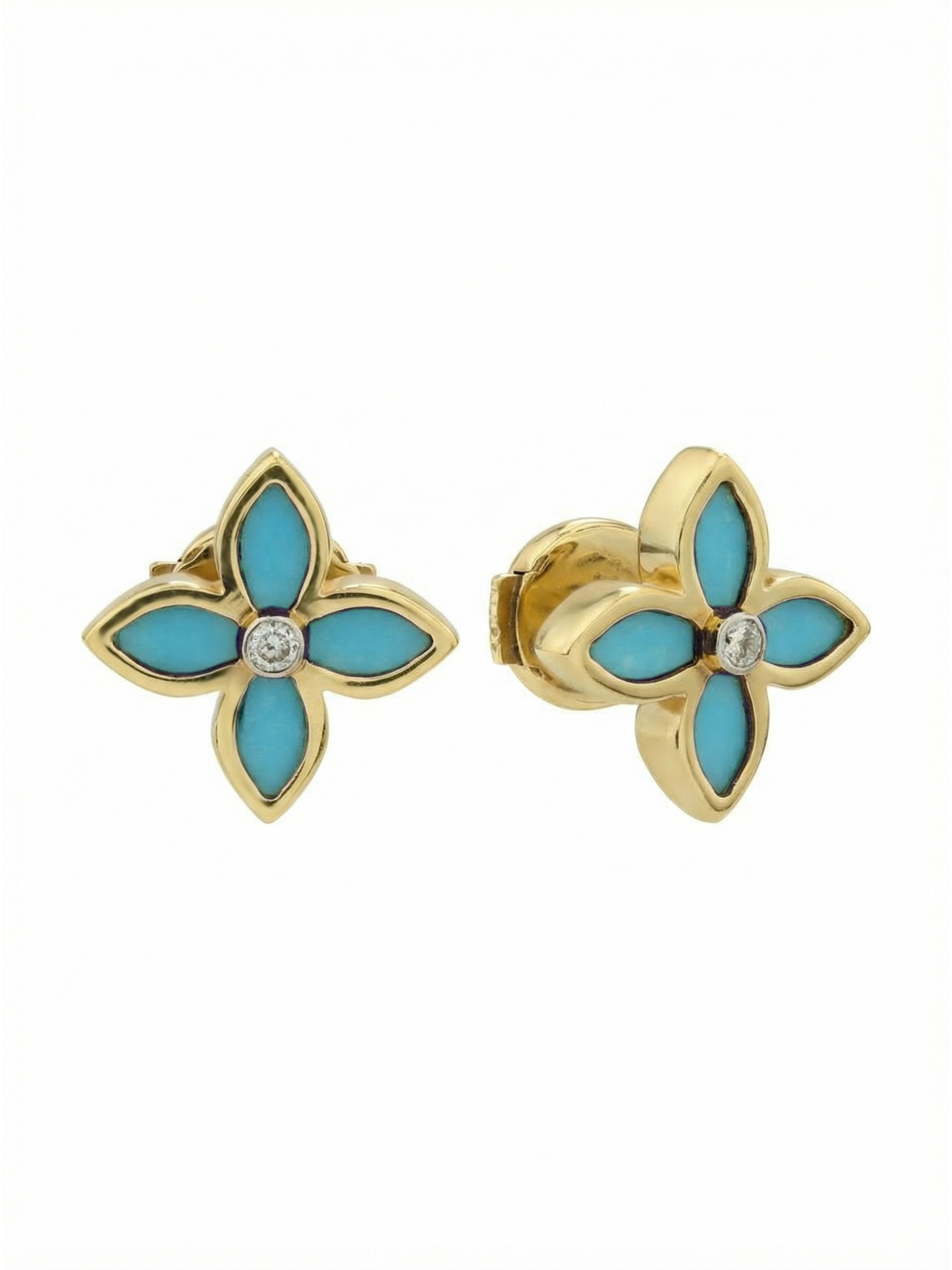 Серьги из лимонного золота c бриллиантами и бирюзой